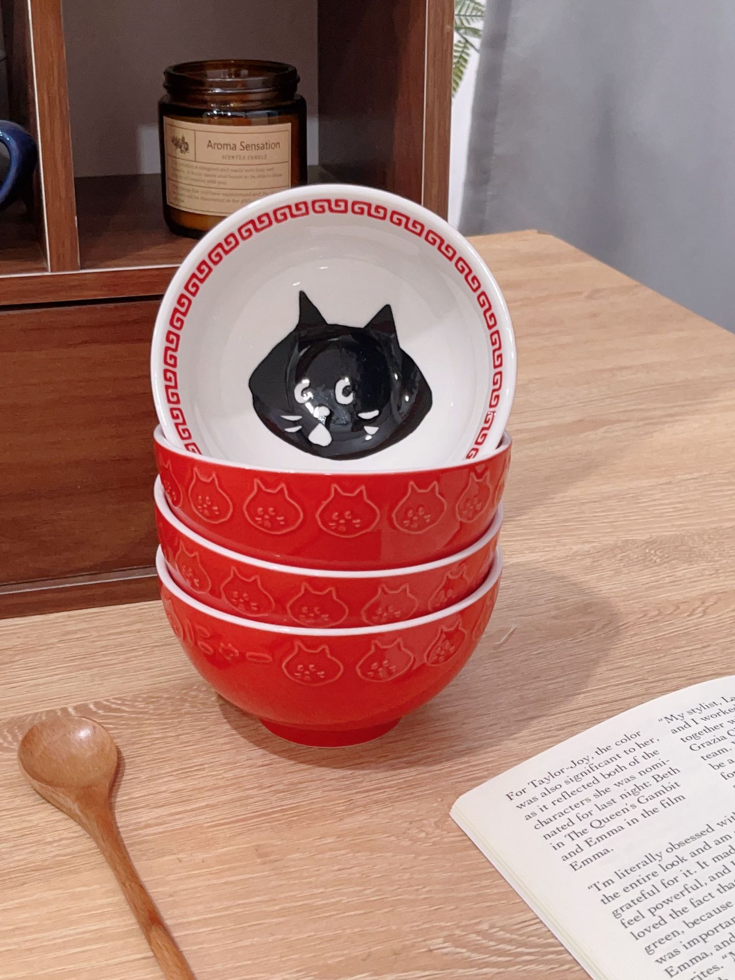 일본 만화 귀여운 놀란 고양이 밥 그릇 유약 컬러 세라믹 그릇 가정용 쌀 그릇 국수 그릇 수프 그릇스토어 가기