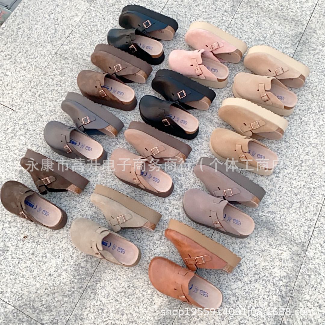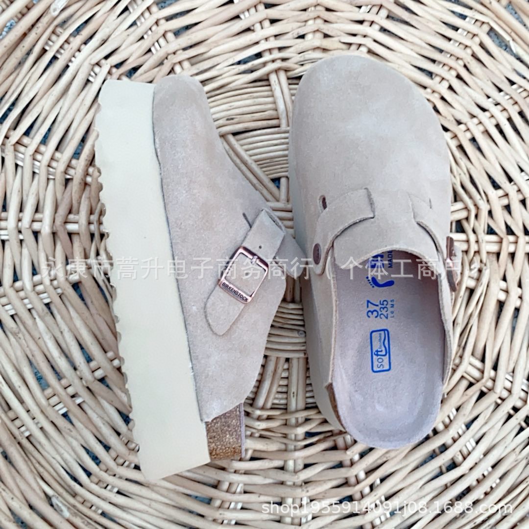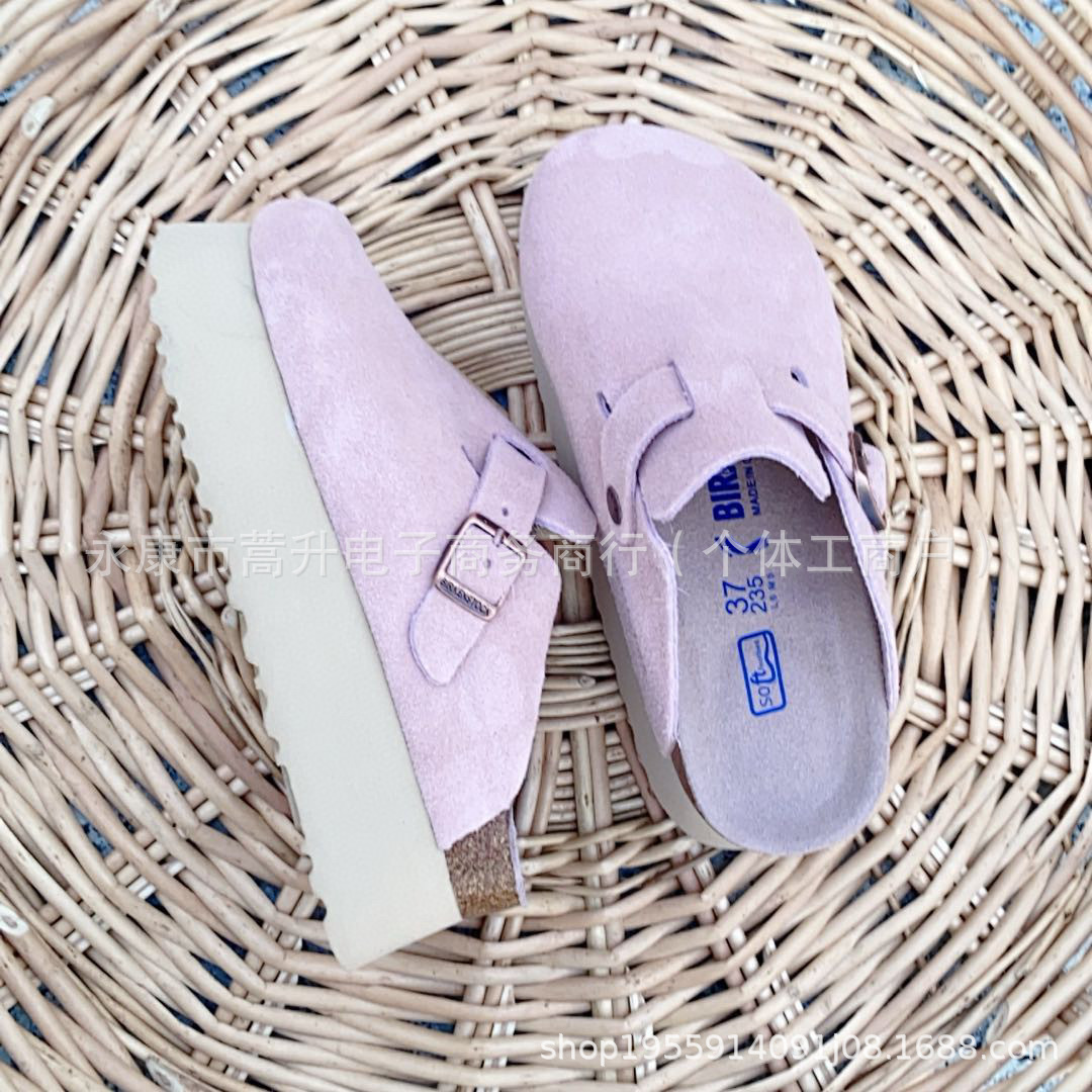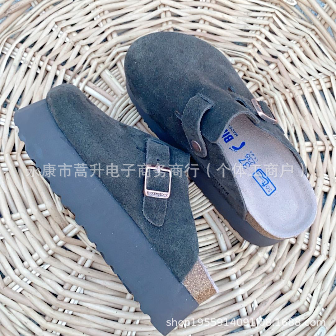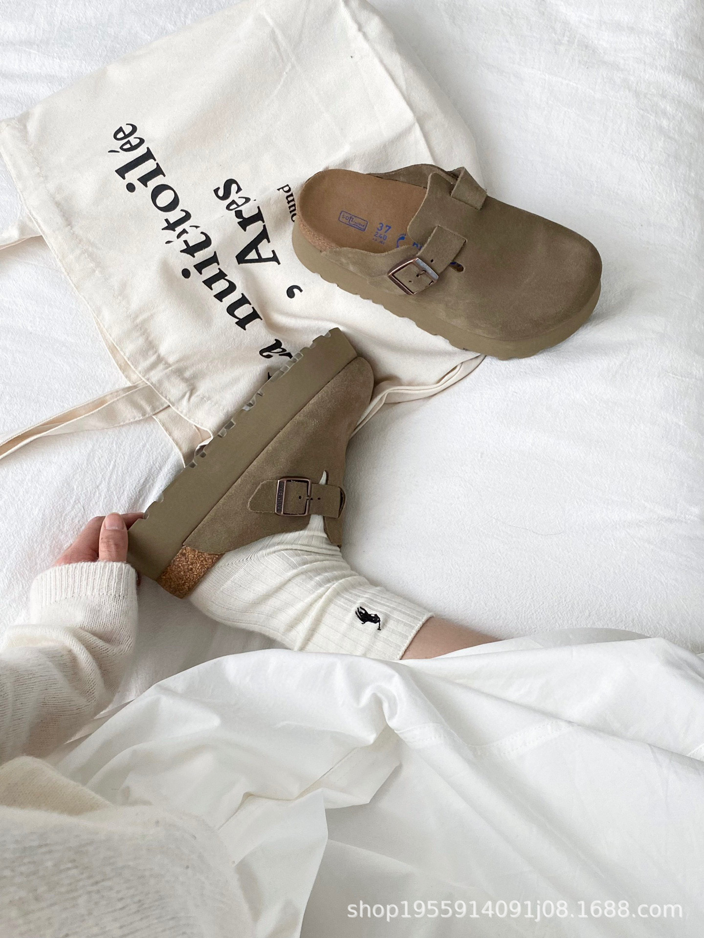 Bocken 슬리퍼 플랫폼 단독 보켄 신발 반 슬리퍼 여성 여름 2024 년 아웃웨어 소 벨벳 리얼 코르크 올 매치