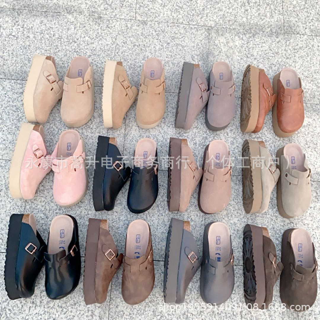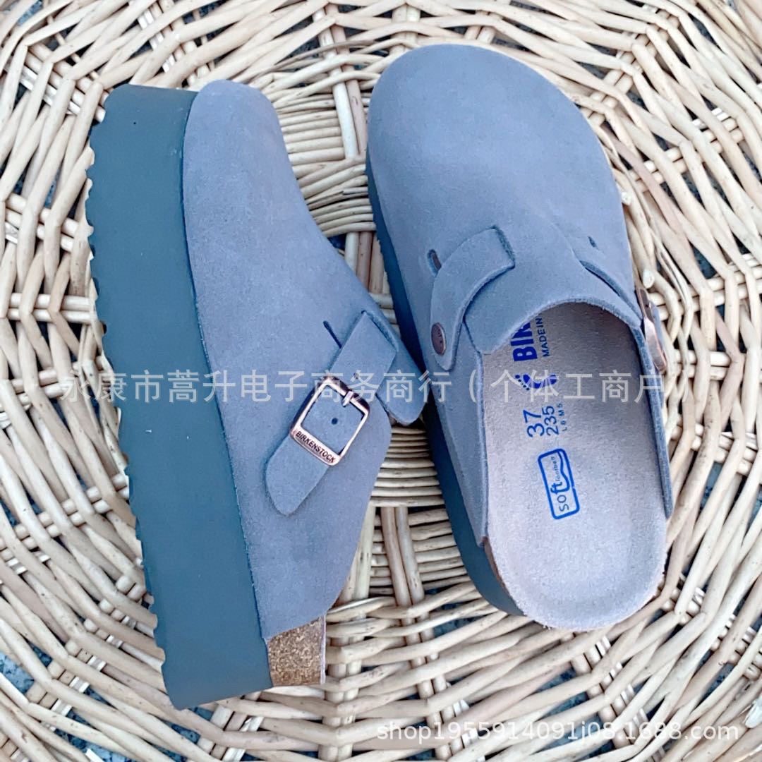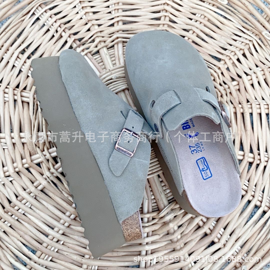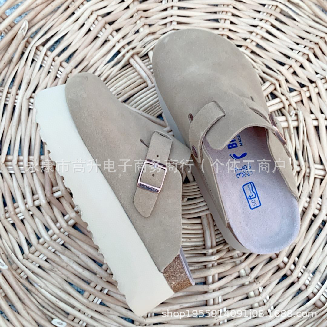 Bocken 슬리퍼 플랫폼 단독 보켄 신발 반 슬리퍼 여성 여름 2024 년 아웃웨어 소 벨벳 리얼 코르크 올 매치