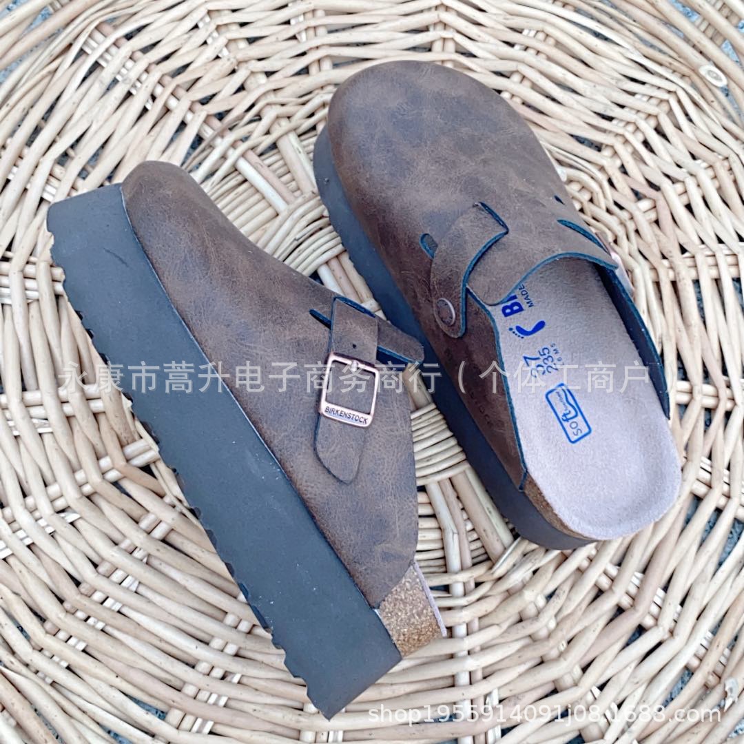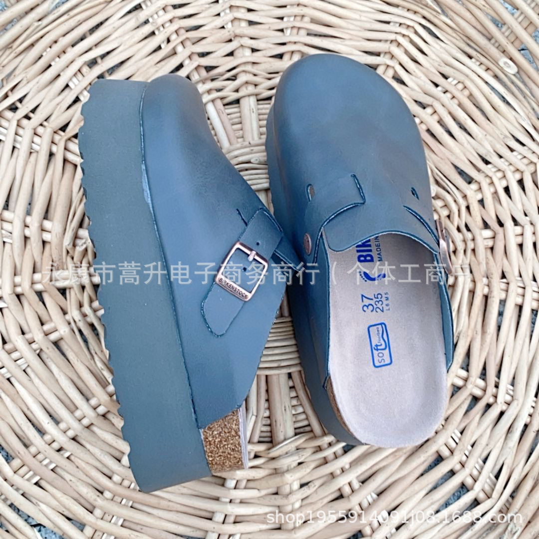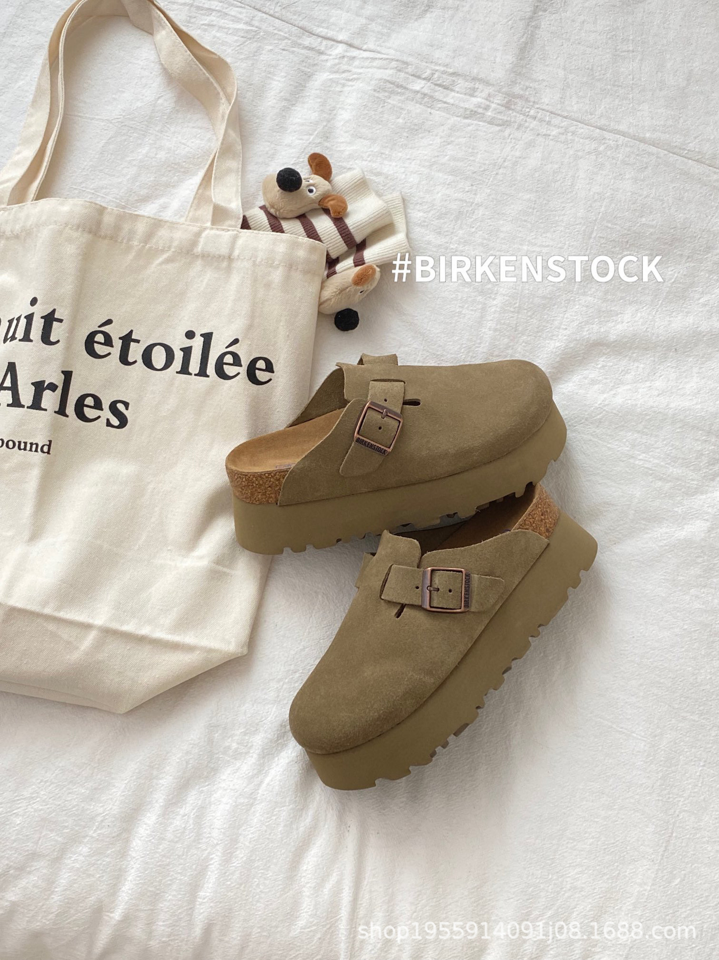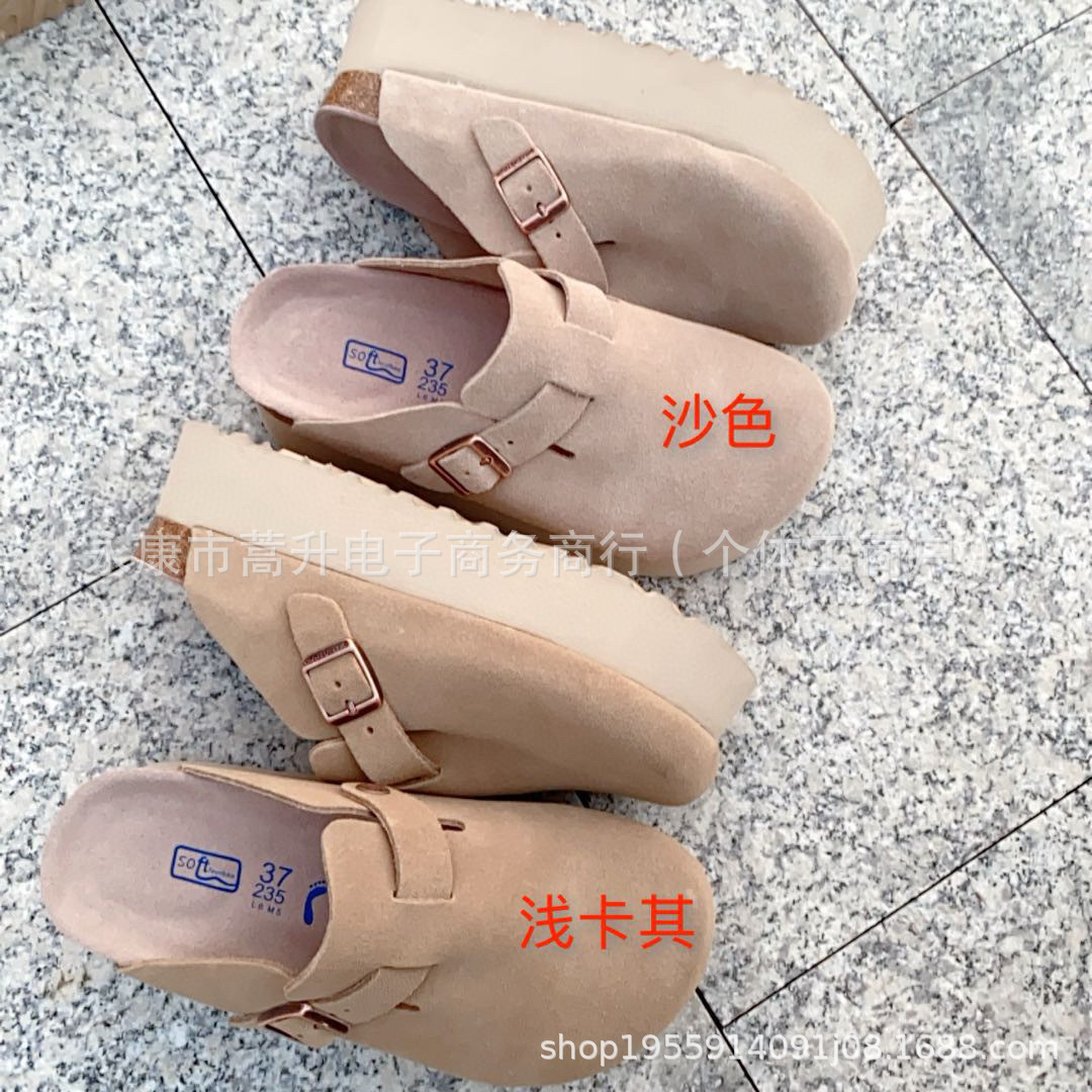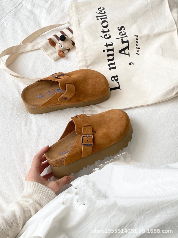 Bocken 슬리퍼 플랫폼 단독 보켄 신발 반 슬리퍼 여성 여름 2024 년 아웃웨어 소 벨벳 리얼 코르크 올 매치