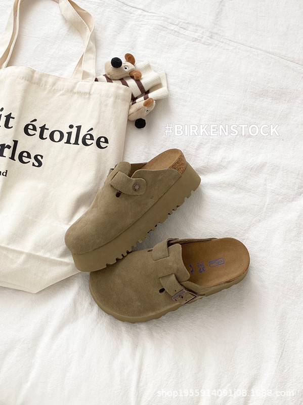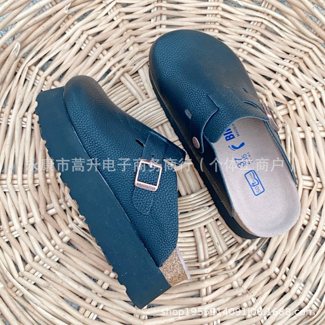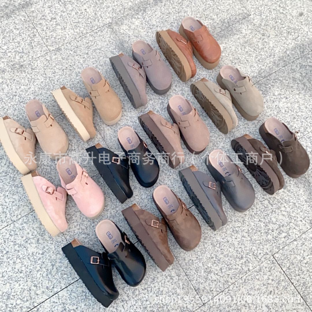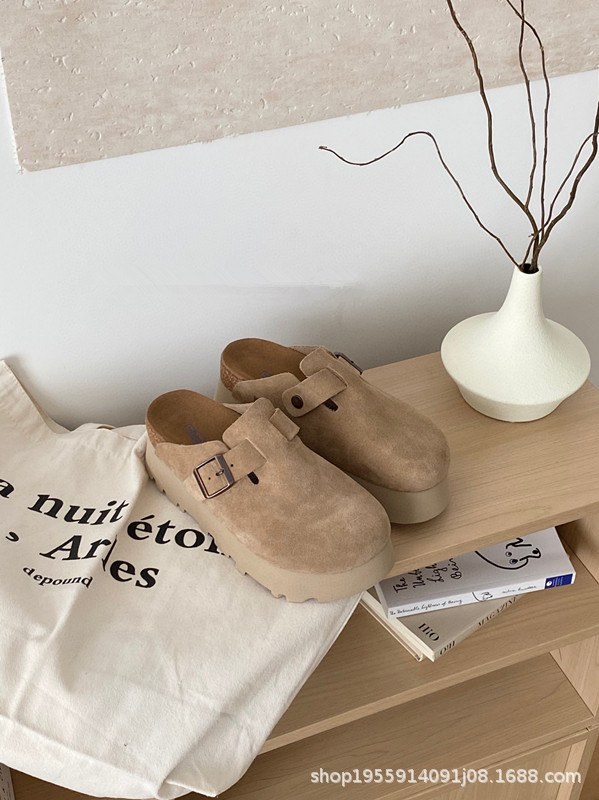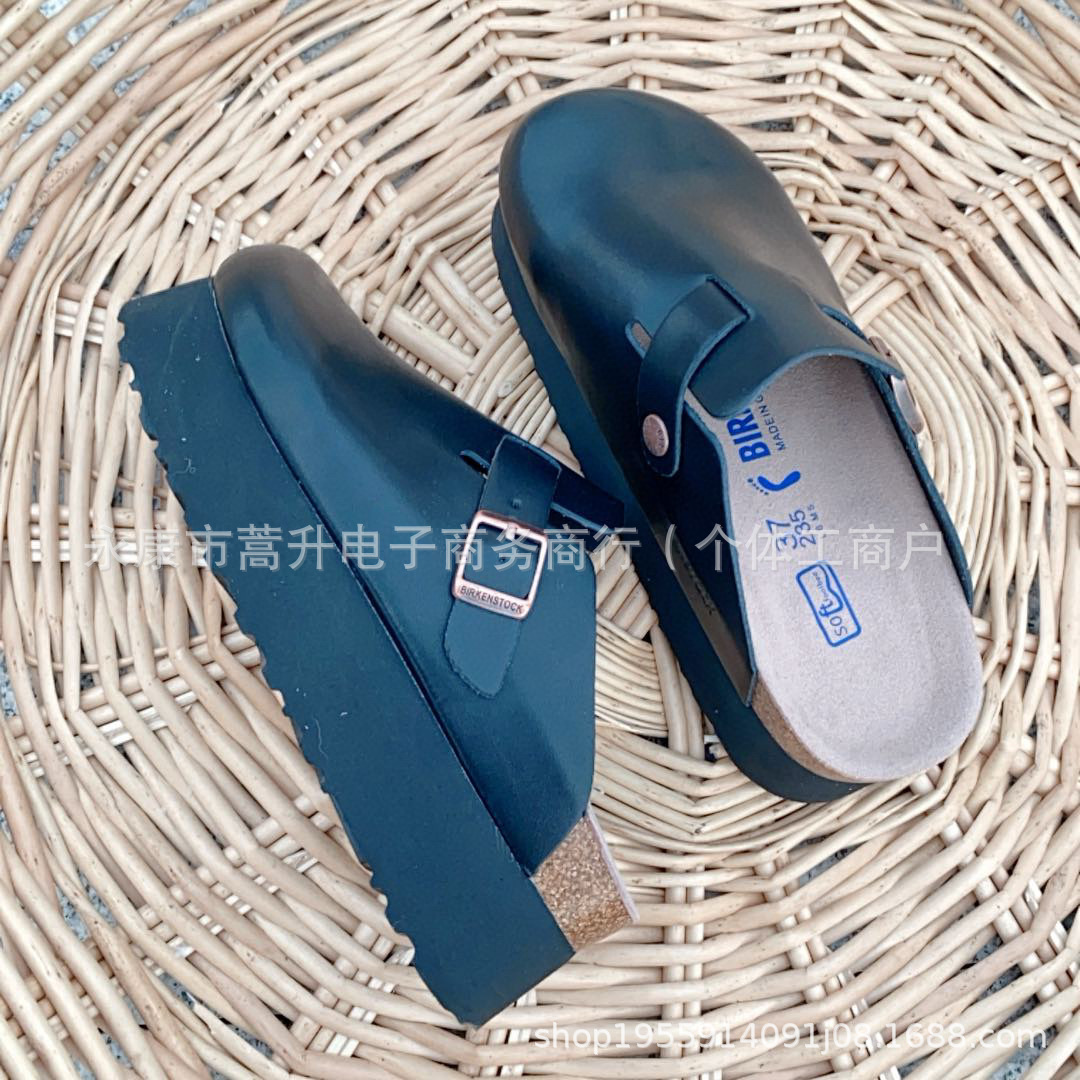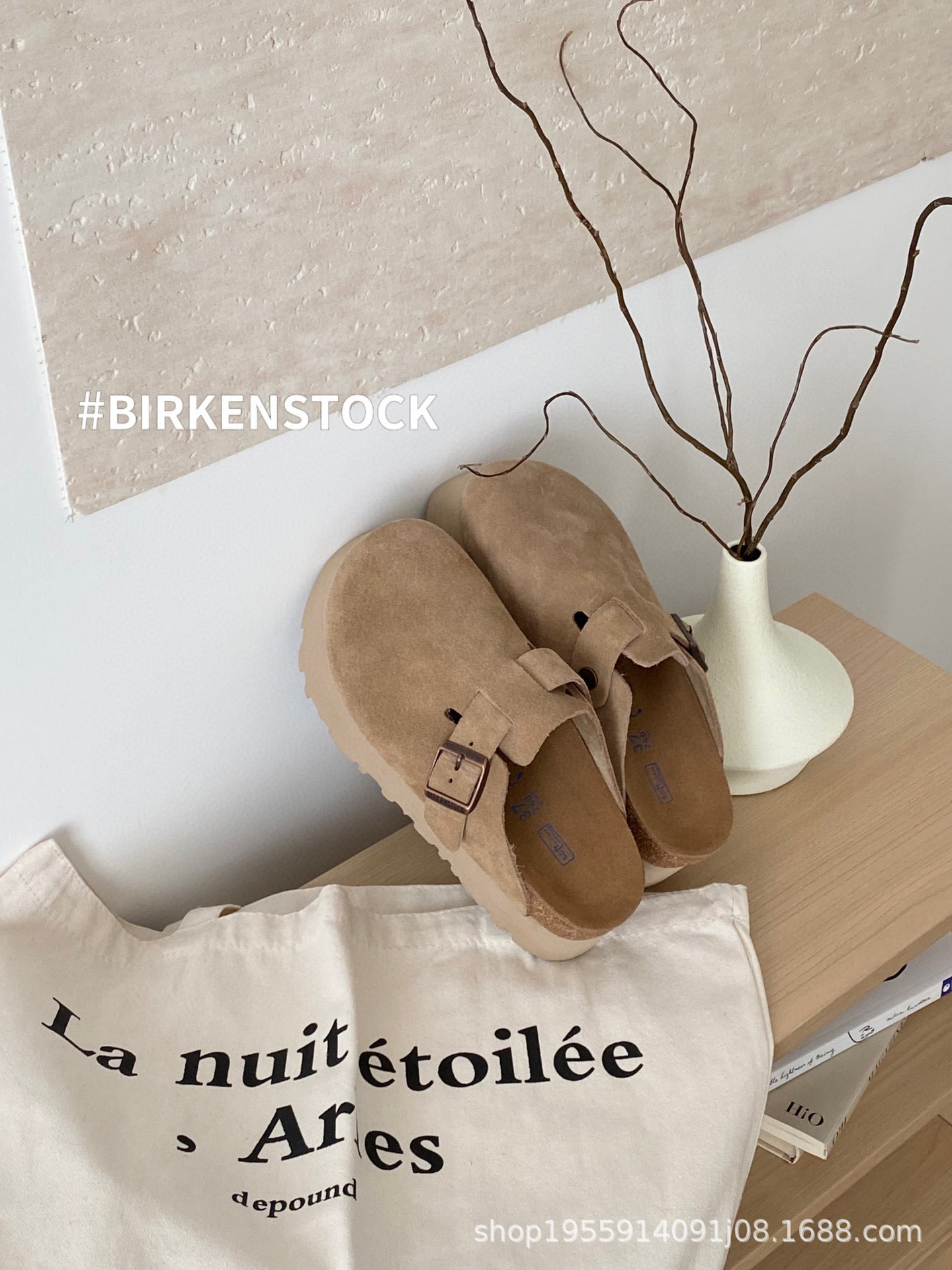 Bocken 슬리퍼 플랫폼 단독 보켄 신발 반 슬리퍼 여성 여름 2024 년 아웃웨어 소 벨벳 리얼 코르크 올 매치