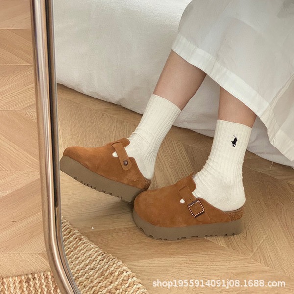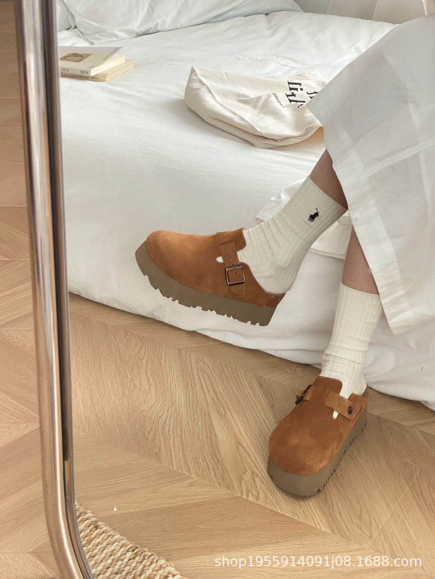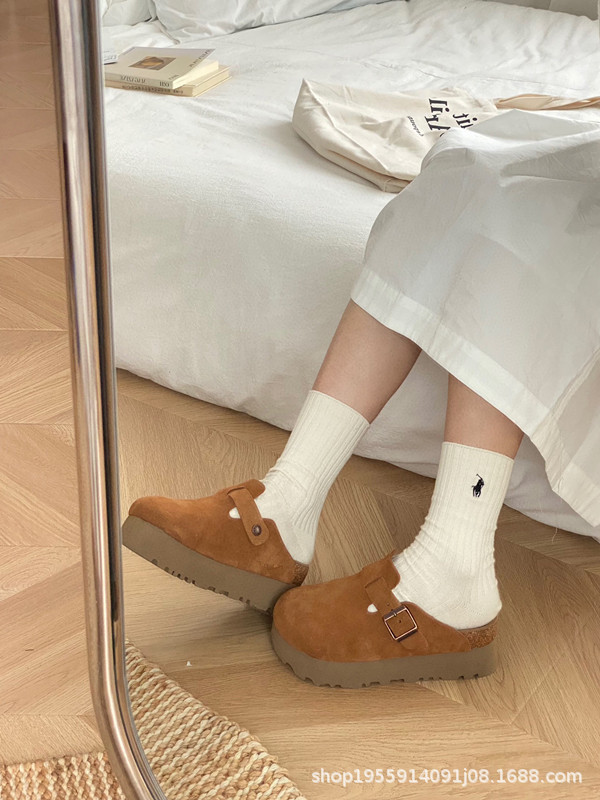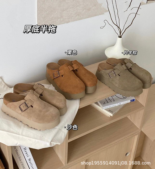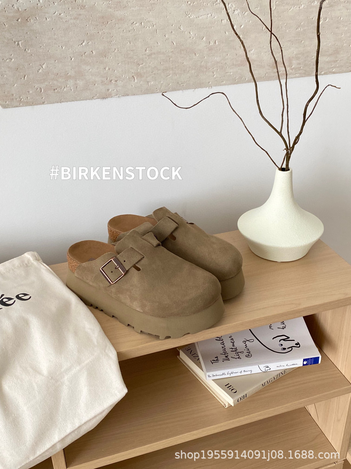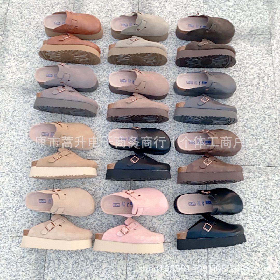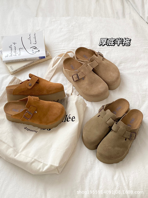 Bocken 슬리퍼 플랫폼 단독 보켄 신발 반 슬리퍼 여성 여름 2024 년 아웃웨어 소 벨벳 리얼 코르크 올 매치