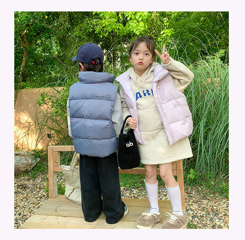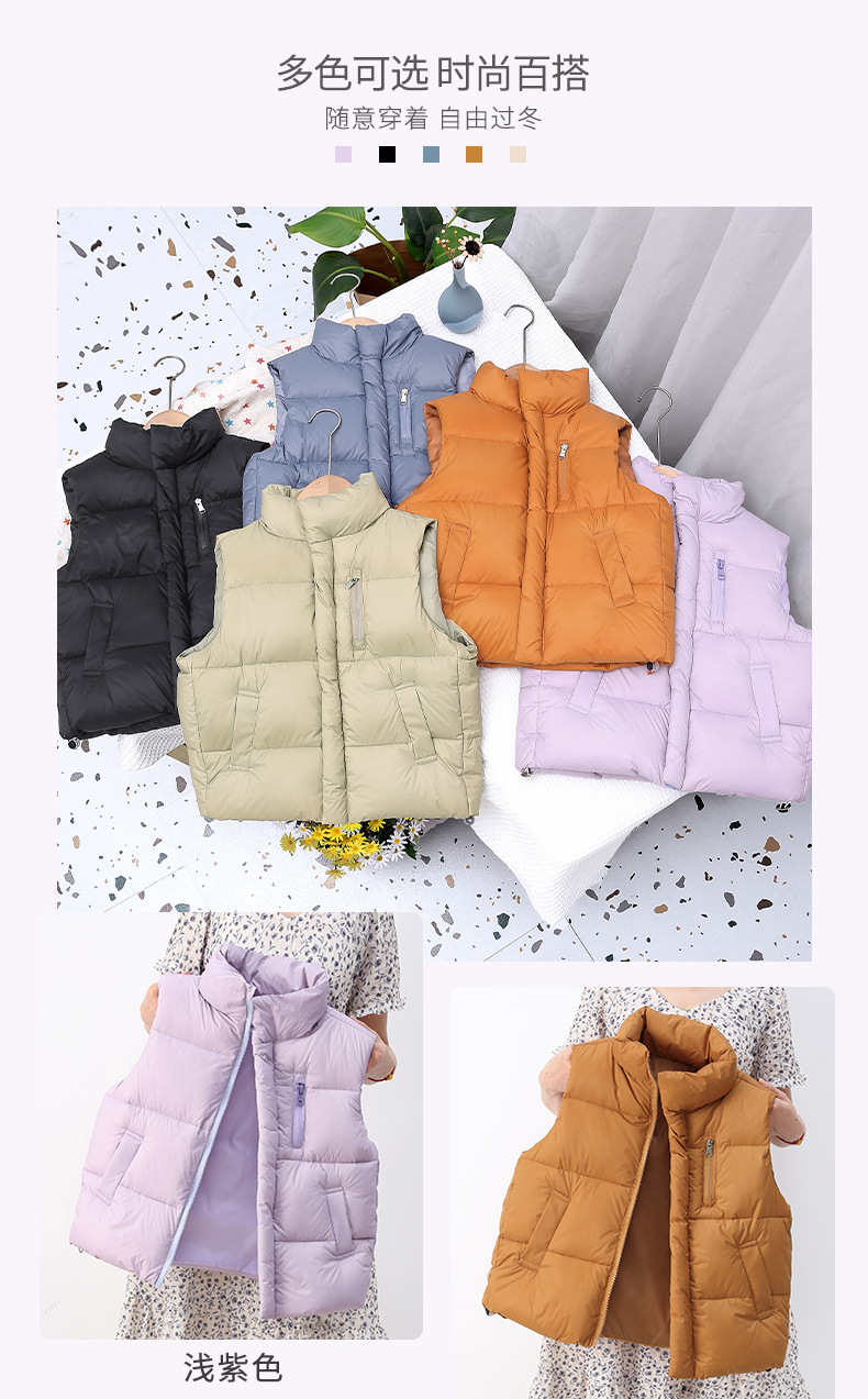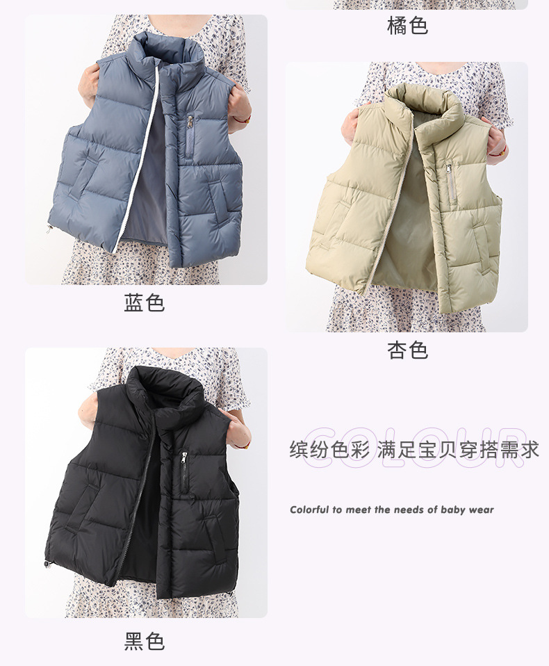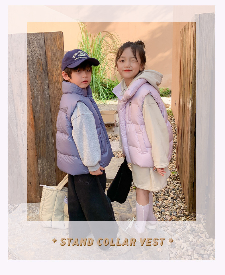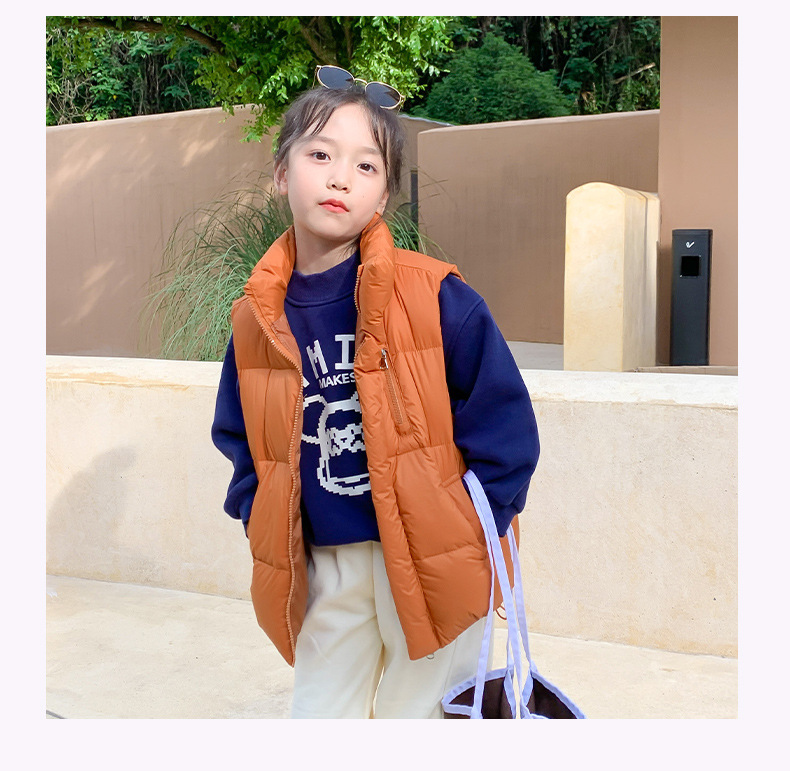 2024년 신형 아동용 다운 실크 조끼, 남녀 어린이용 스탠드 칼라 조끼, 흰색 오리털 외투 조끼스토어 가기