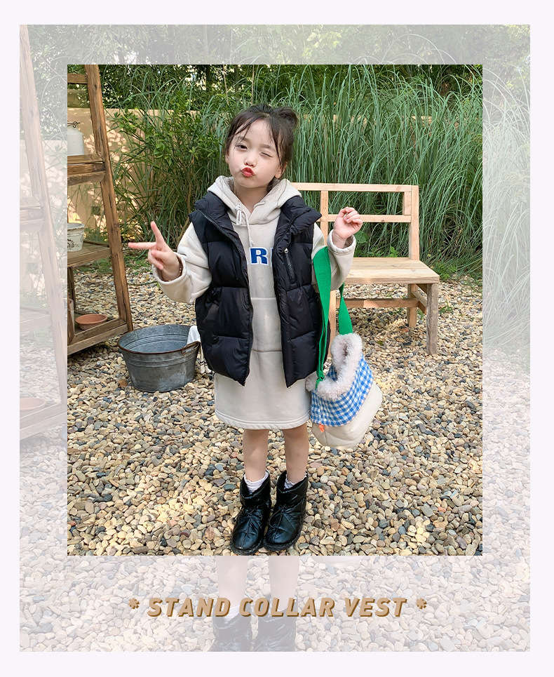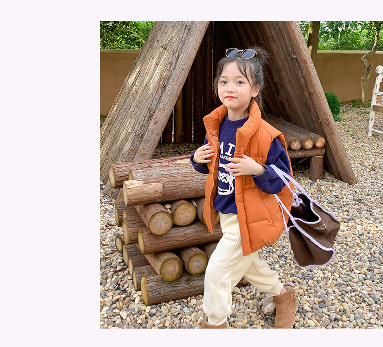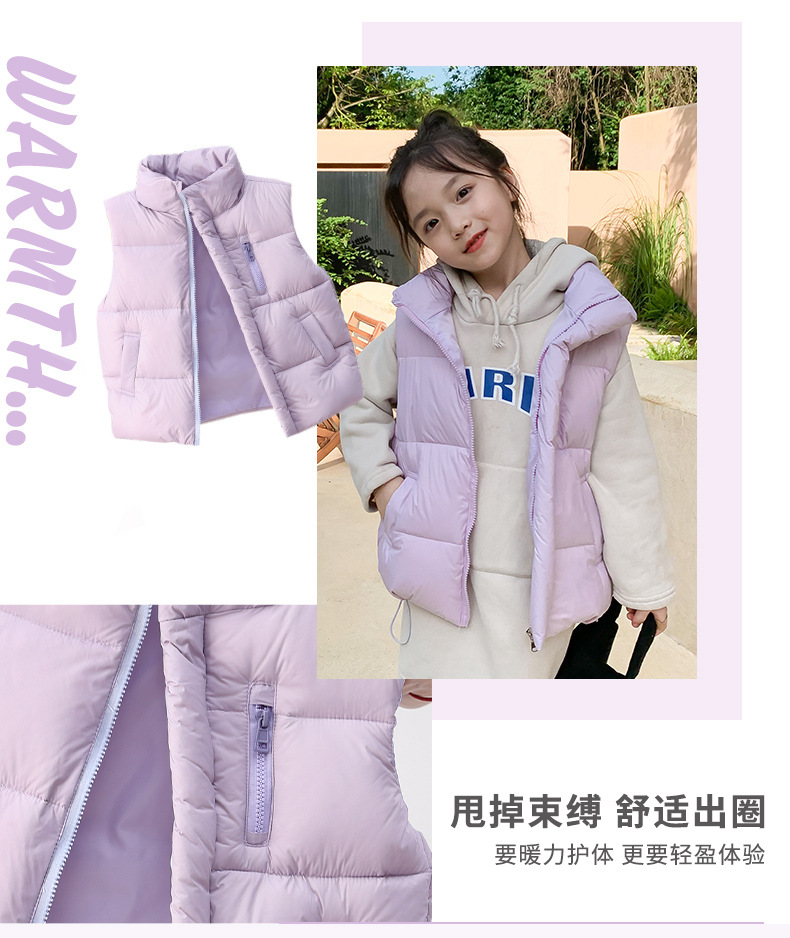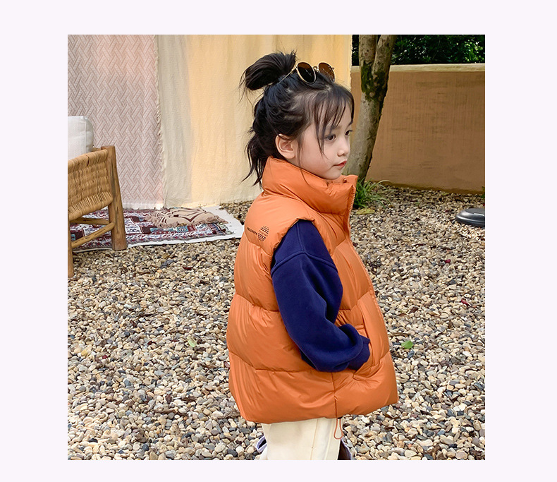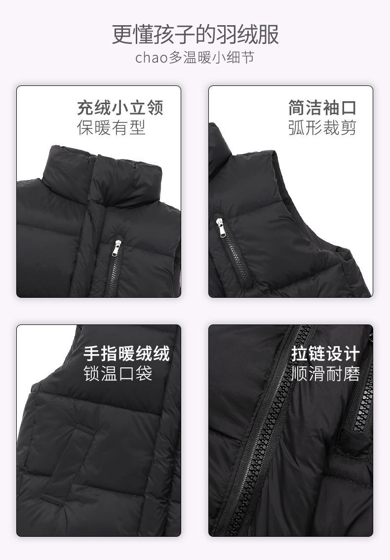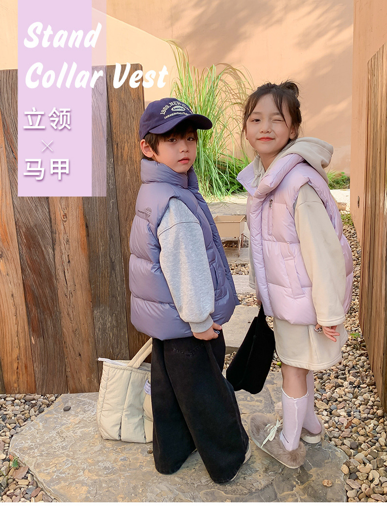 2024년 신형 아동용 다운 실크 조끼, 남녀 어린이용 스탠드 칼라 조끼, 흰색 오리털 외투 조끼스토어 가기