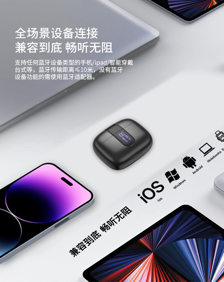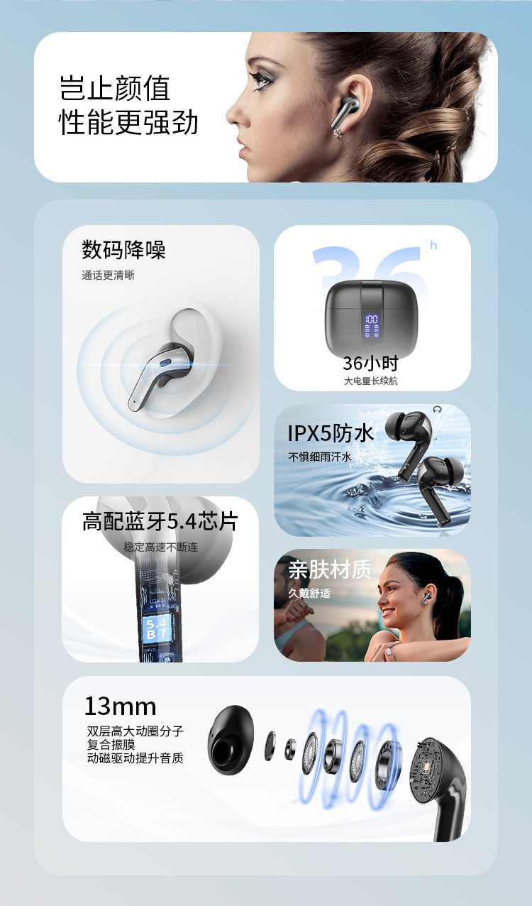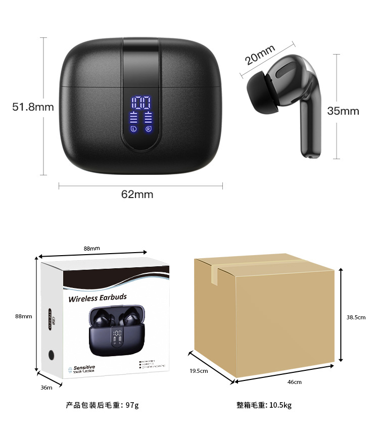 새로운 기술의 노이즈 캔슬링 디지털 디스플레이 인이어형 트루 무선 이어폰, 스포츠용, 긴 배터리 수명, 블루투스, 고음질 블루투스 이어폰스토어 가기