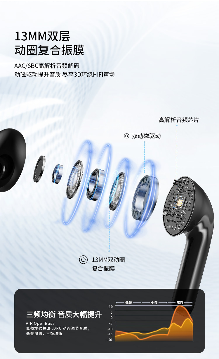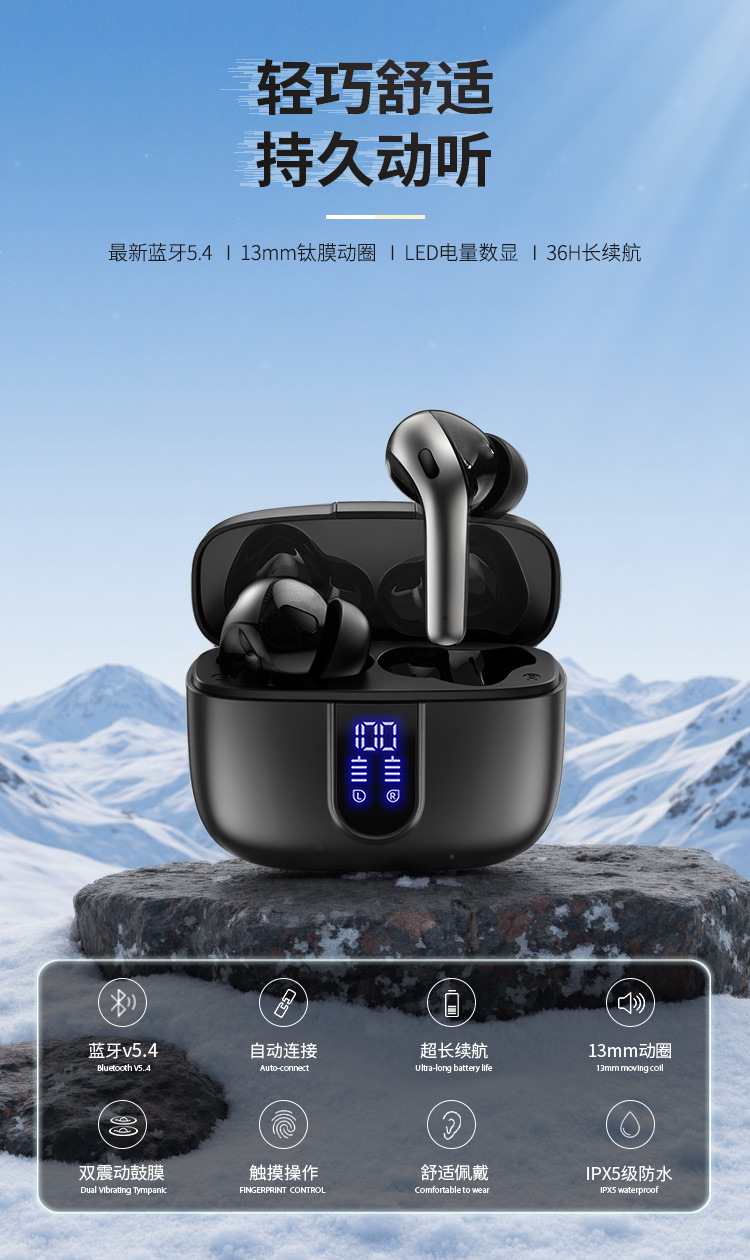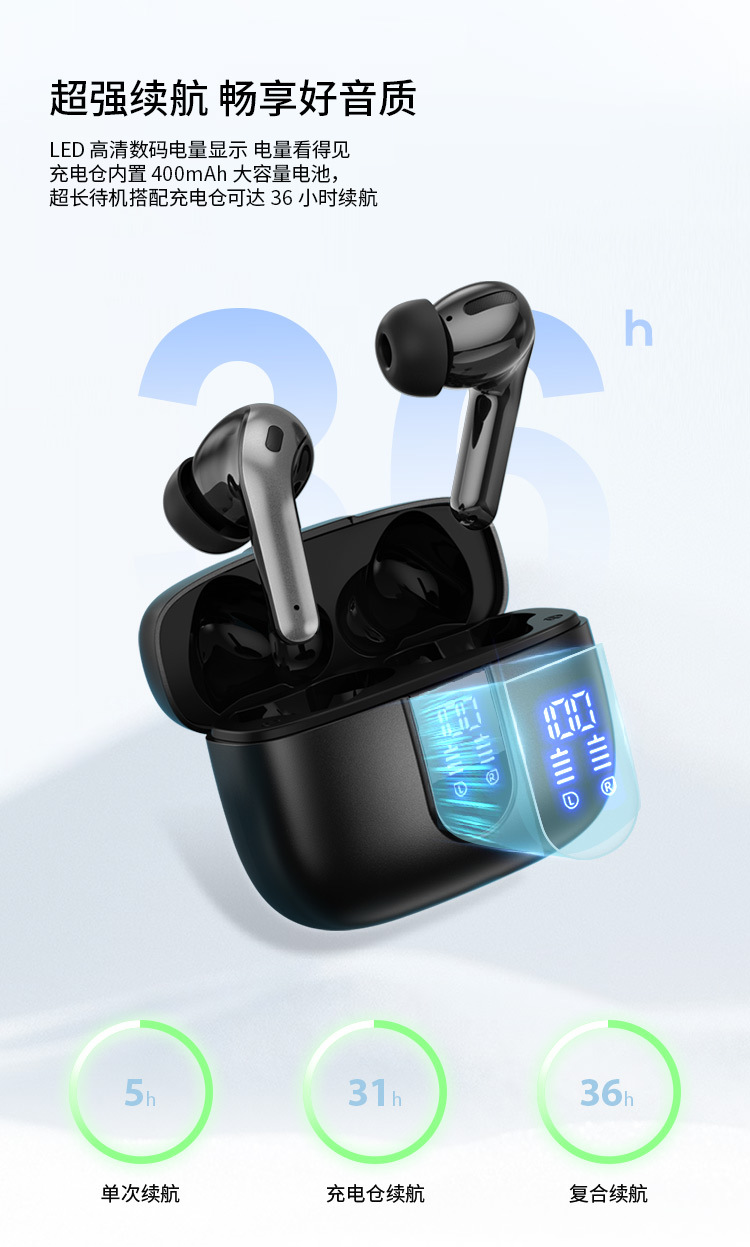 새로운 기술의 노이즈 캔슬링 디지털 디스플레이 인이어형 트루 무선 이어폰, 스포츠용, 긴 배터리 수명, 블루투스, 고음질 블루투스 이어폰