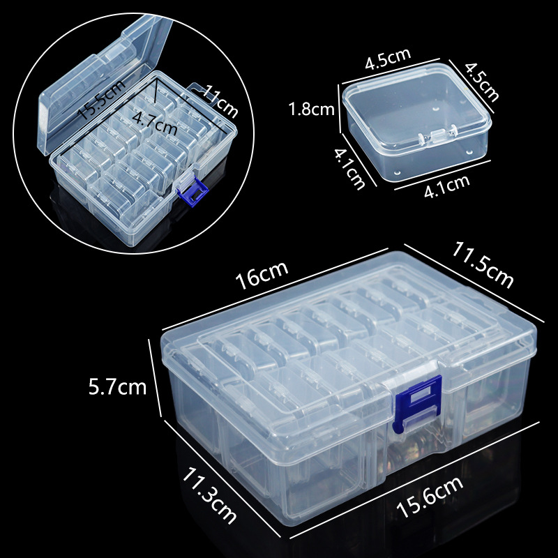 18 팩 4.5 사각형 상자 투명 구획 저장 상자 보석 구슬 생선 후크 하드웨어 버튼 직사각형 플라스틱 상자