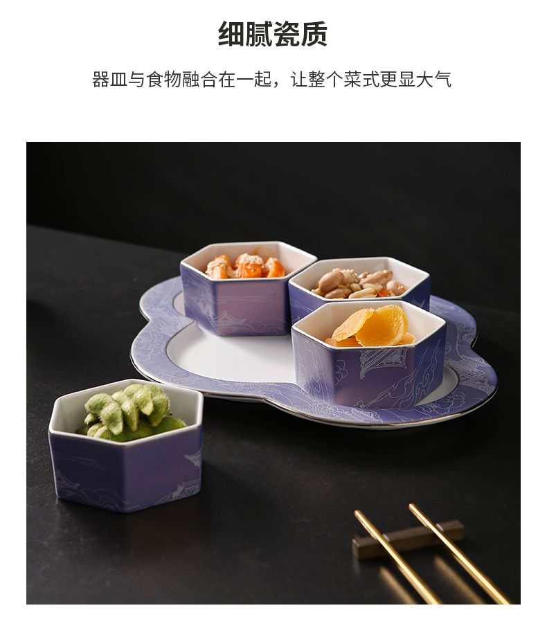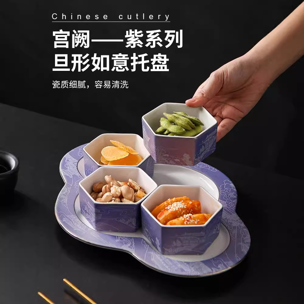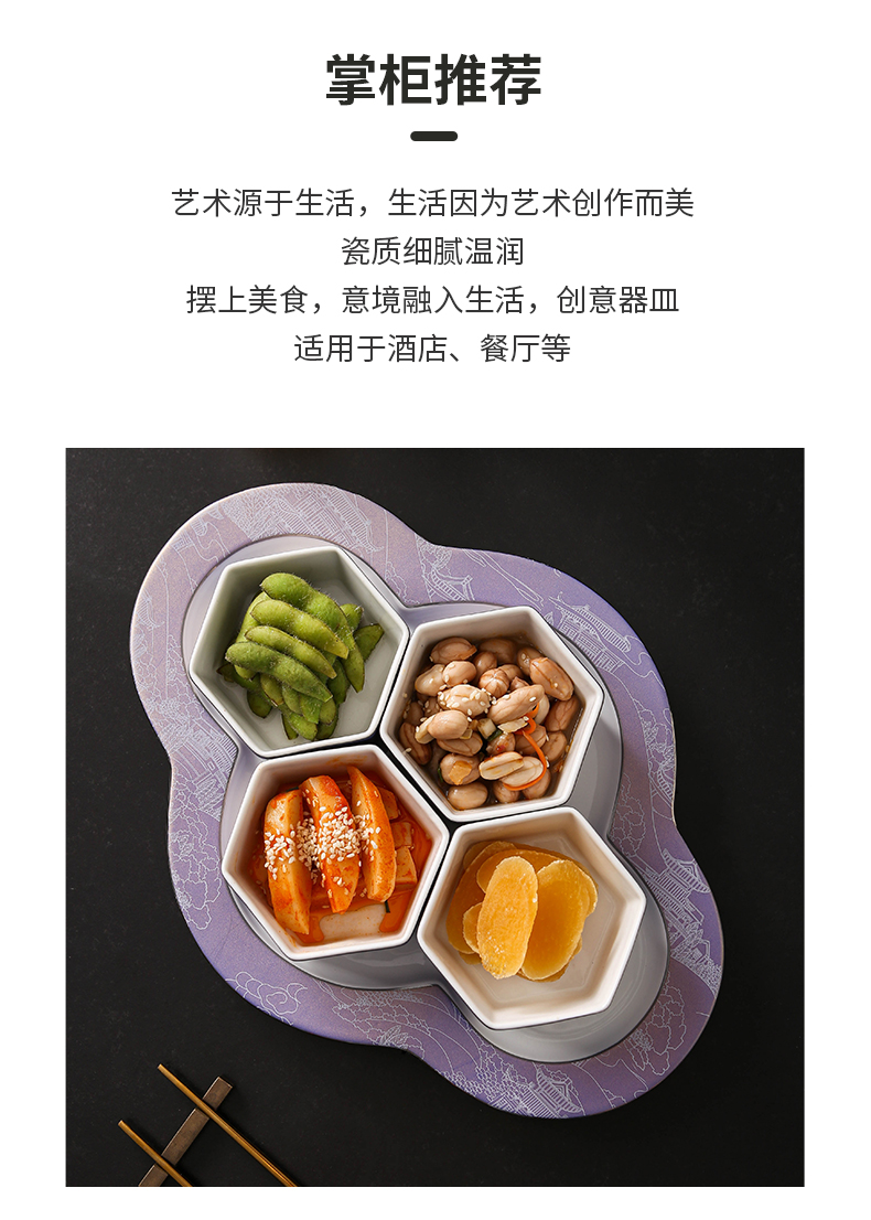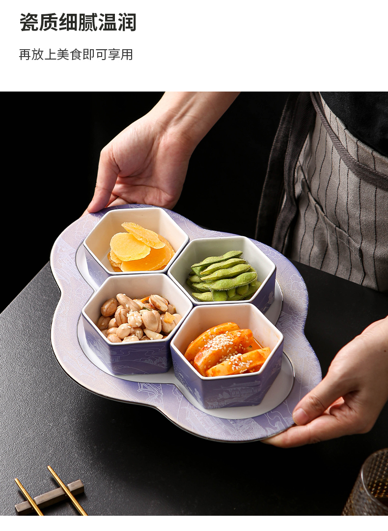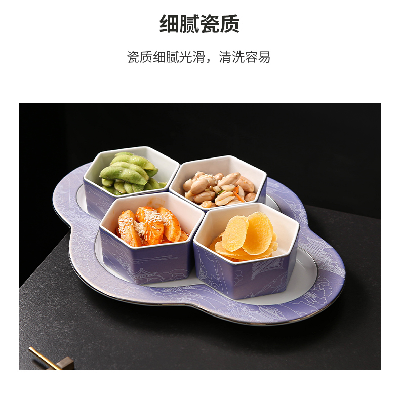 | Gong Que Zi | "Dan 모양의 Ruyi Tray" 클럽 육각형 스낵 접시 창조적 인 차가운 요리 4 칸 플래터