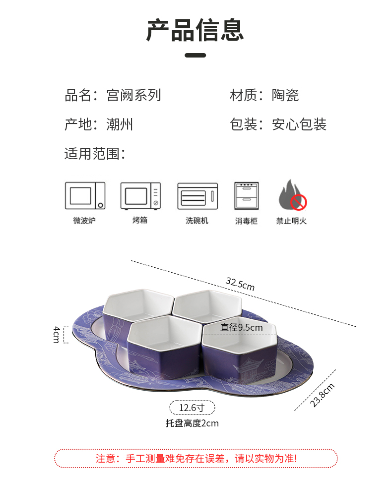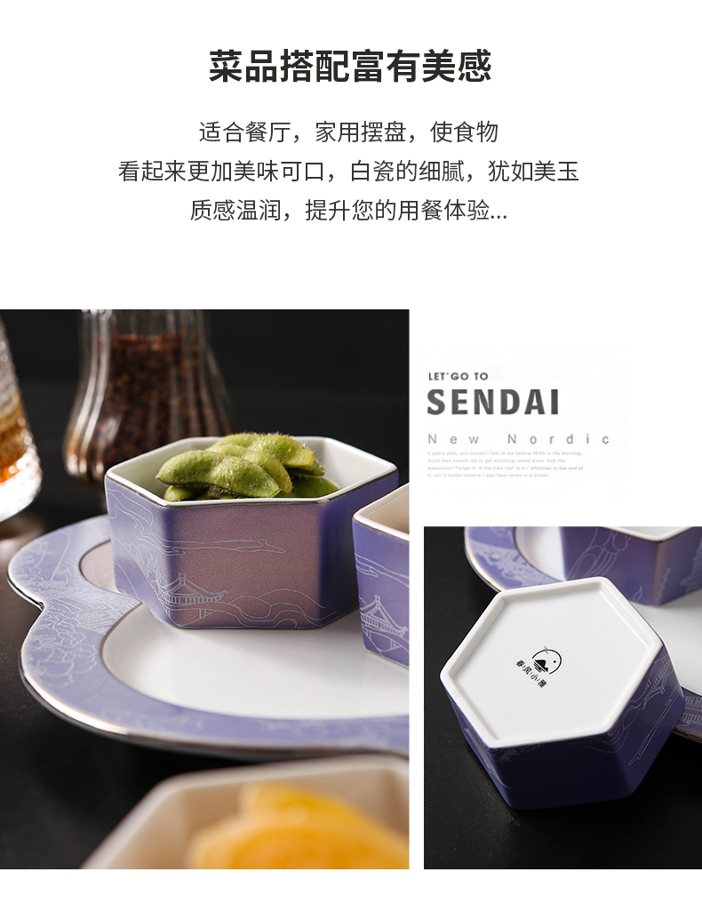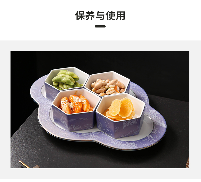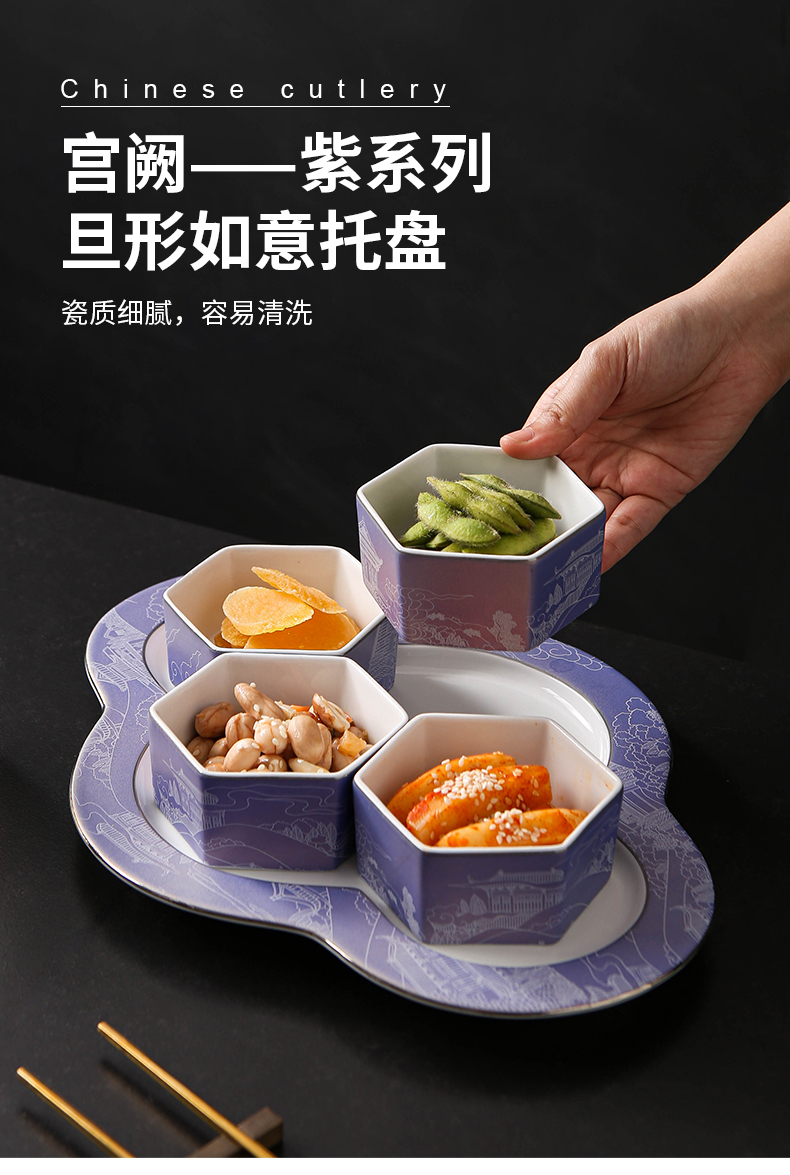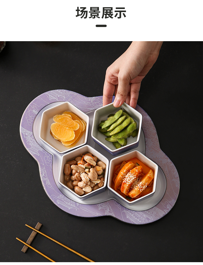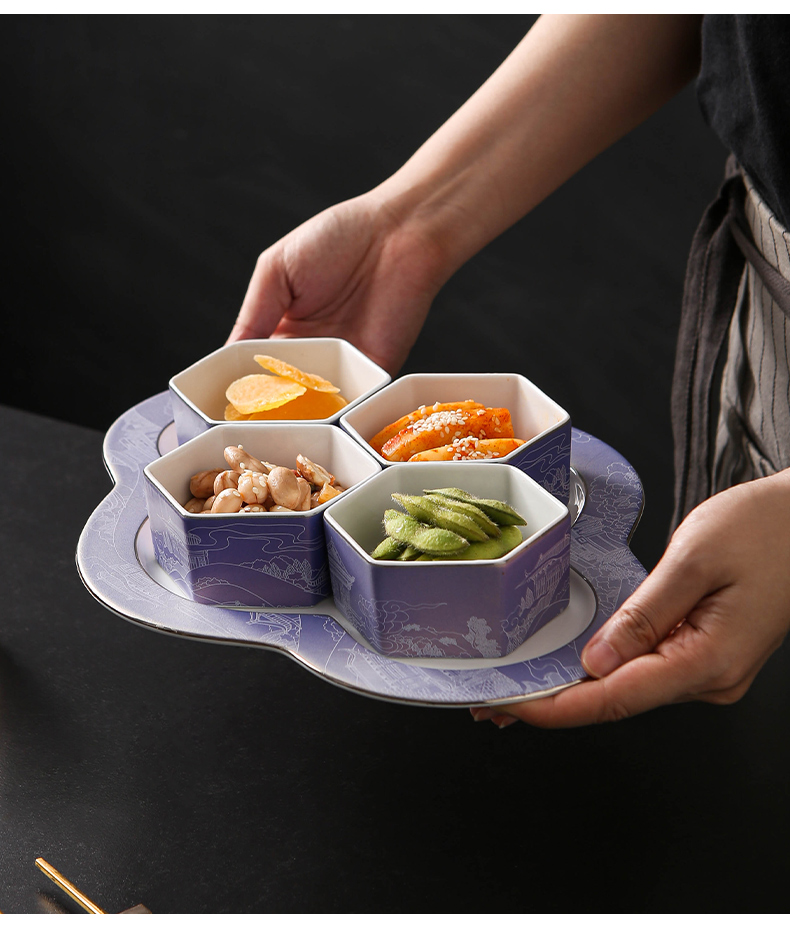 | Gong Que Zi | "Dan 모양의 Ruyi Tray" 클럽 육각형 스낵 접시 창조적 인 차가운 요리 4 칸 플래터