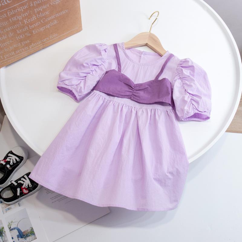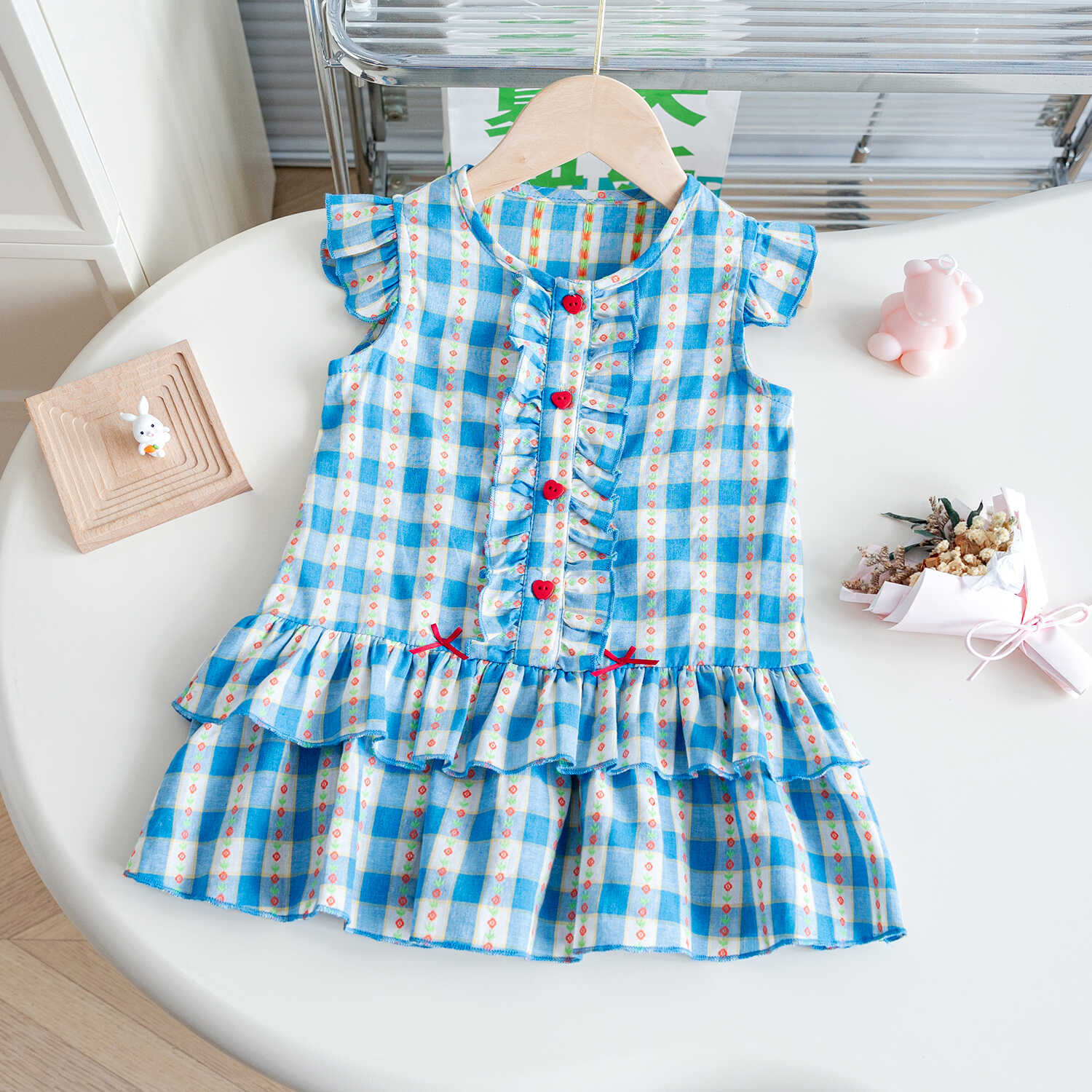 여아용 아동복 어린이 여름 세련 된 파란 격자 무늬 빈 치마 아기 소녀 유행 한국 공주 원피스스토어 가기