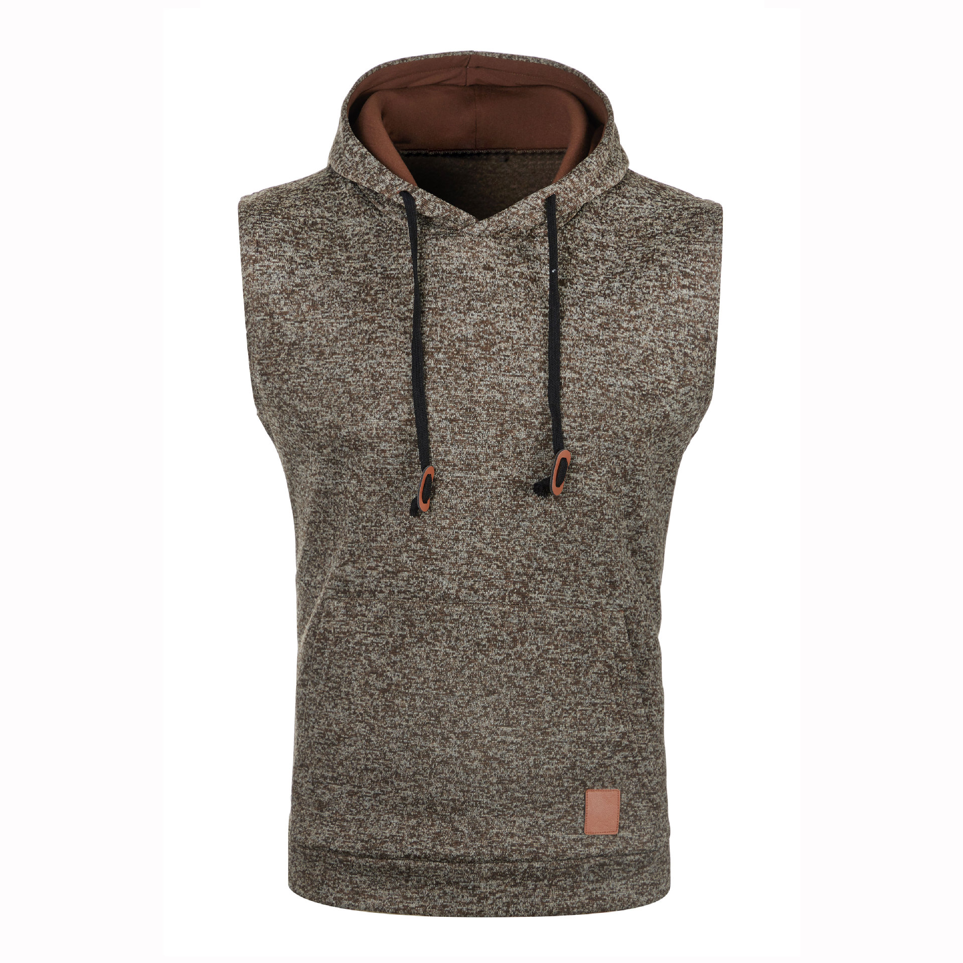 가을과 겨울 새로운 남자 조끼 얇은 벨벳 니트웨어 슬림 핏 스웨터 남자 풀오버 후드 포켓 조끼스토어 가기
