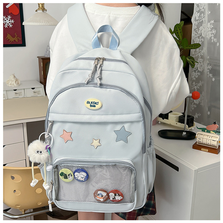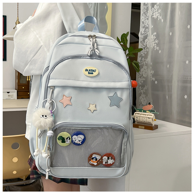 대용량 스쿨백 여성 중학교 학생 한국 스타일 귀여운 스타 학생 배낭 대용량 고등학생 컴퓨터 배낭