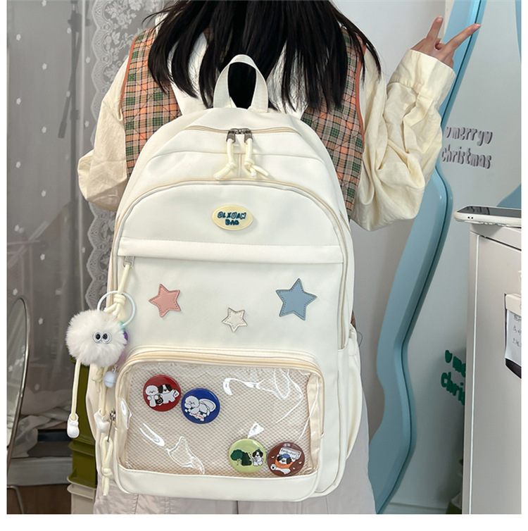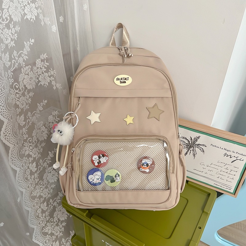 대용량 스쿨백 여성 중학교 학생 한국 스타일 귀여운 스타 학생 배낭 대용량 고등학생 컴퓨터 배낭스토어 가기