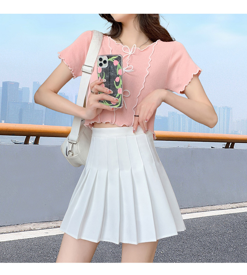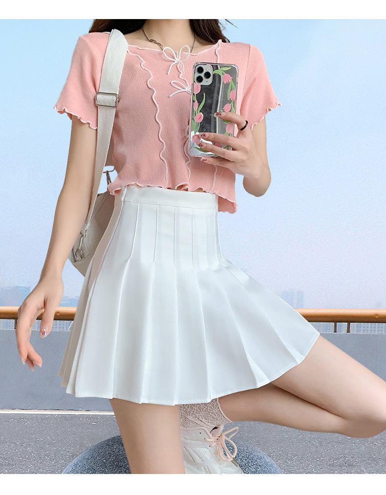 한국 스타일 패션 주름 치마 여성 학생 2024 여름 새로운 학술 스타일 올 매치 스커트 높은 허리 고기 덮개 치마