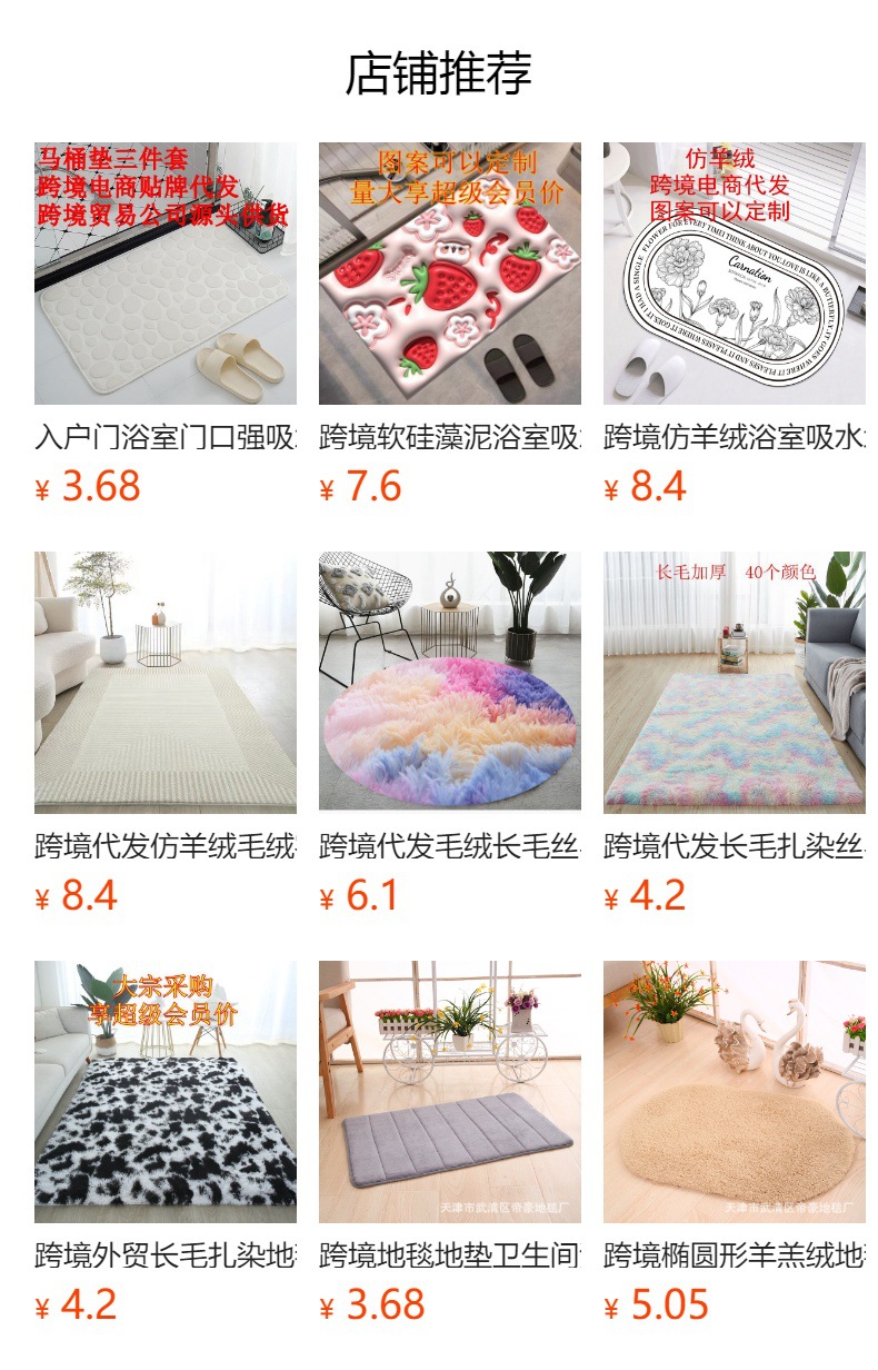 此款地毯适合的经销商;国际贸易商,国际电商,实体批发商。淘宝,天猫,京东,拼多多等零售平台一件代发。