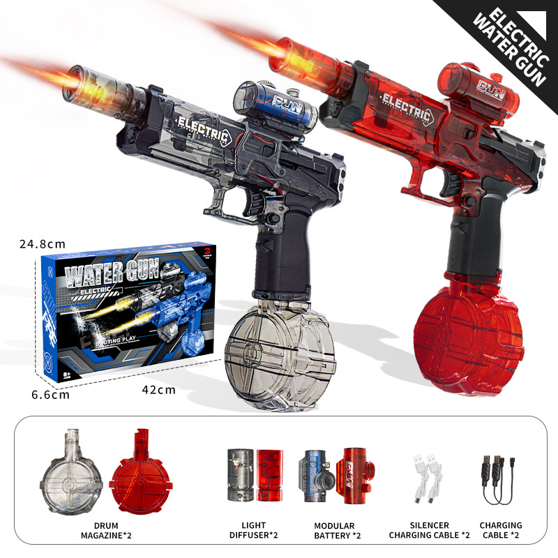 아이스 마우스 전기 물 총 펄스 물 총 손 자체 통합 자동 물 흡수 및 잡아 대용량 빛 어린이 물총 장난감스토어 가기