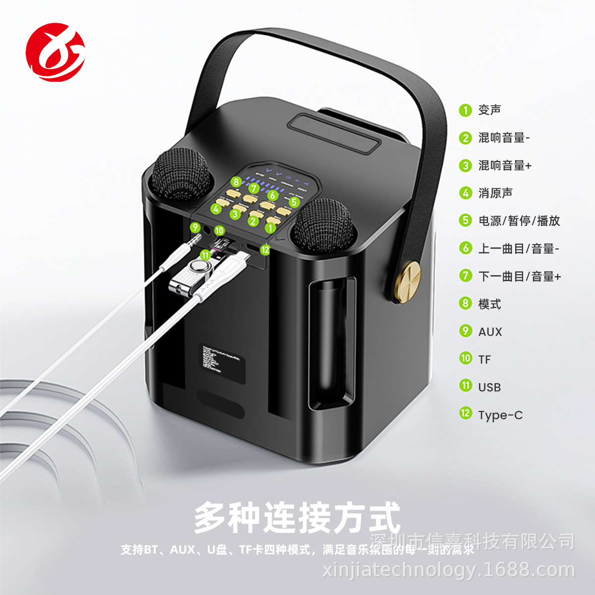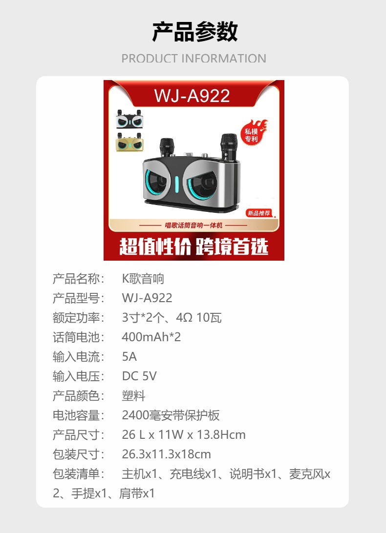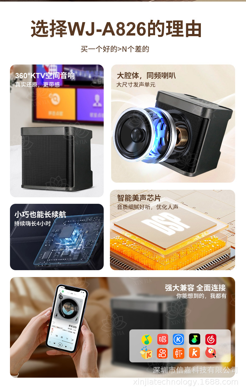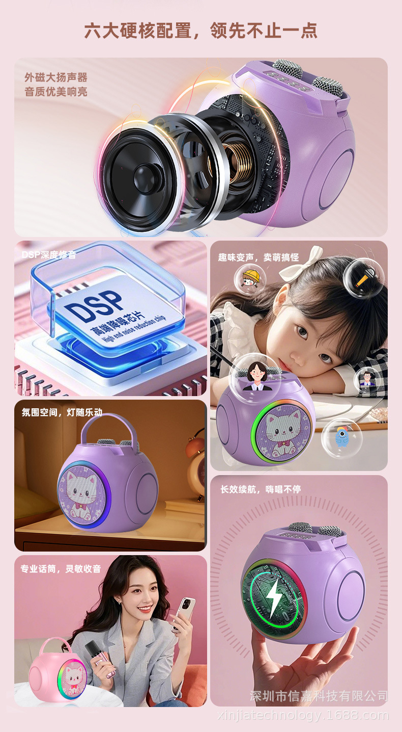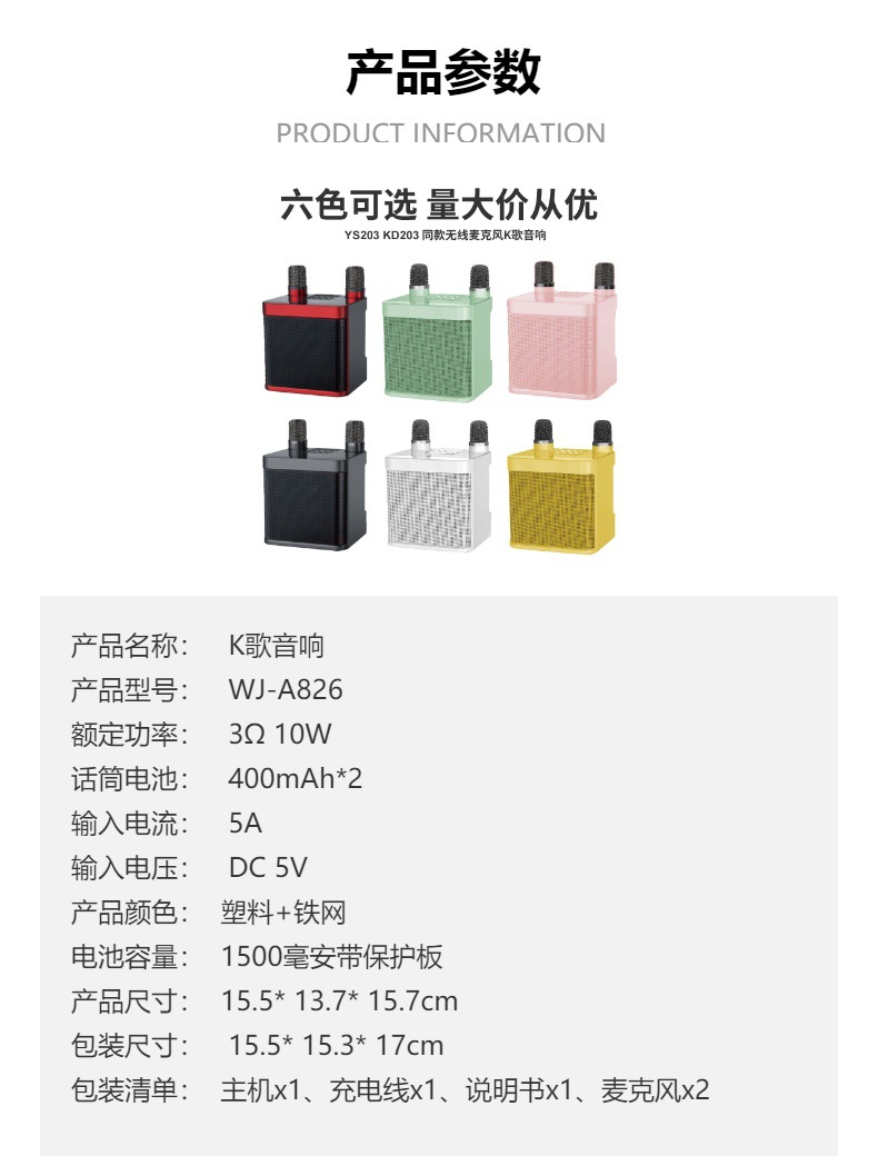마이크가 내장된 크로스보더 블루투스 스피커, 휴대용 블루투스 스피커 203, 가정용 노래방 스피커
