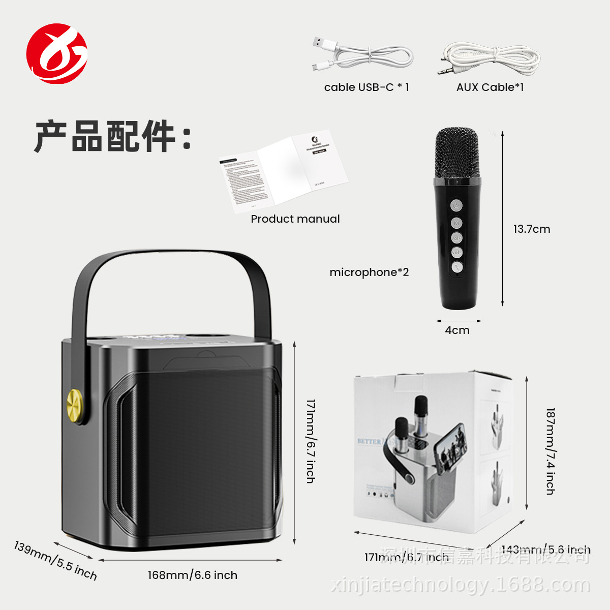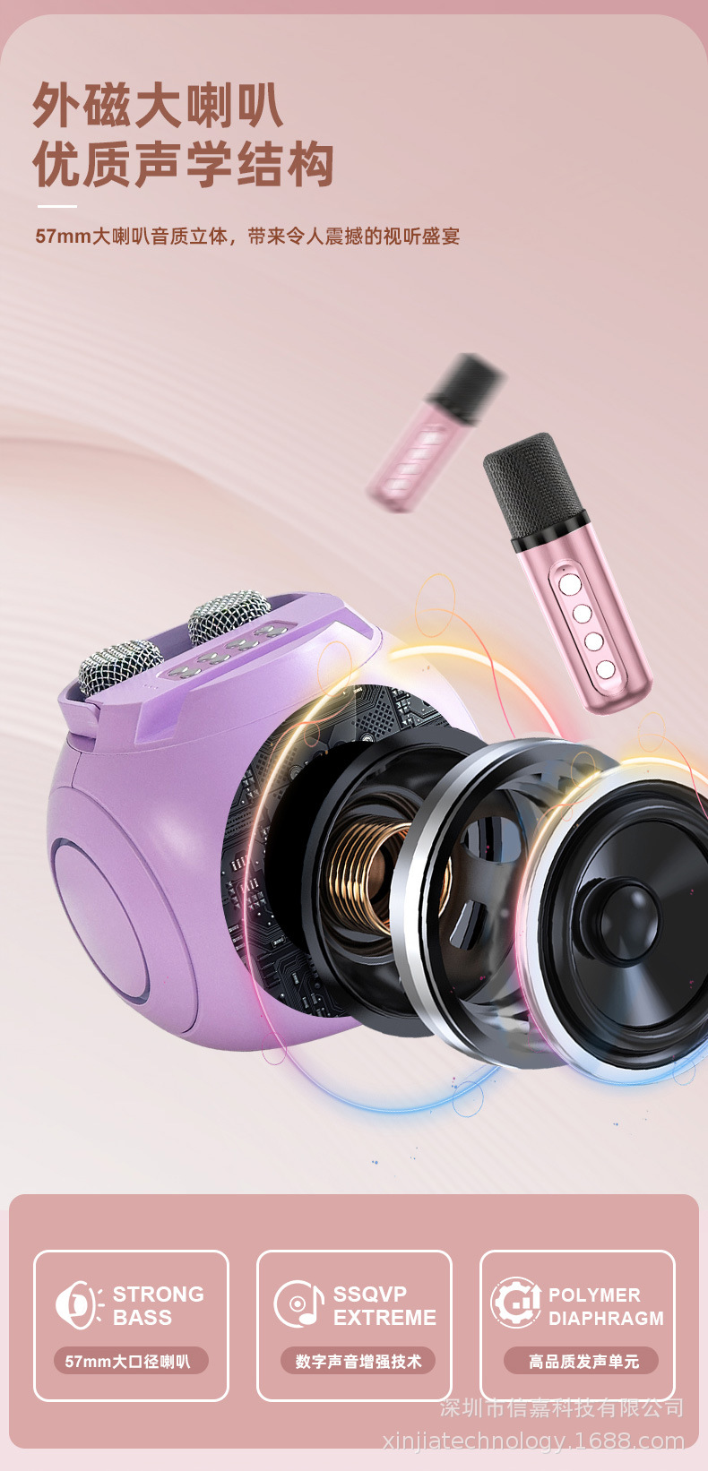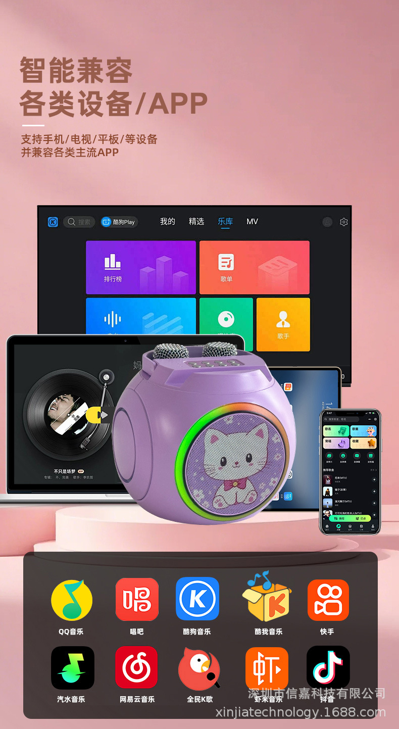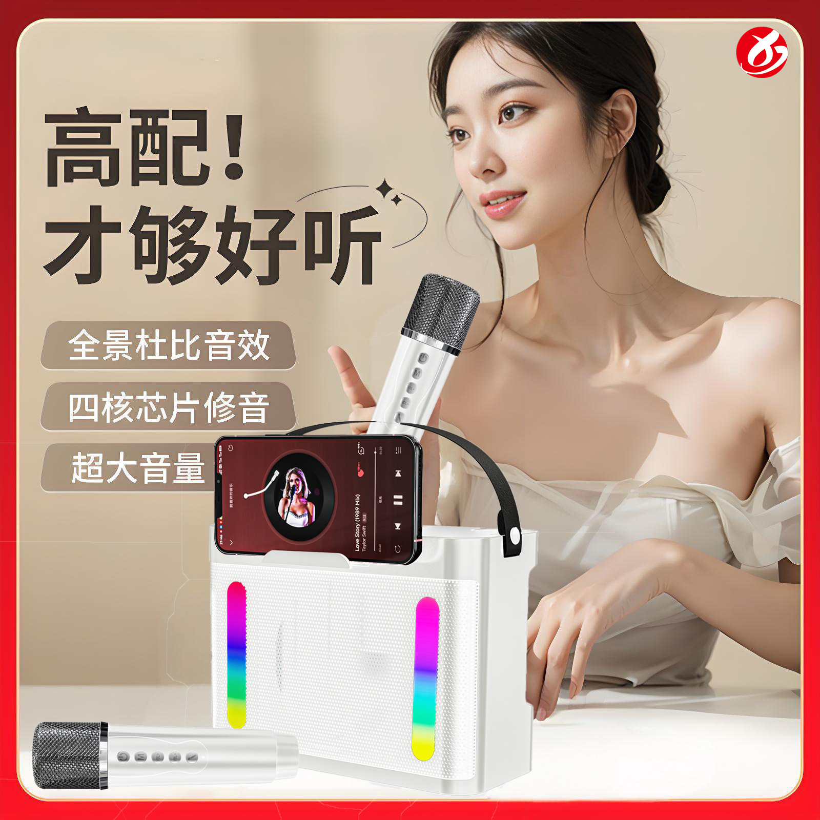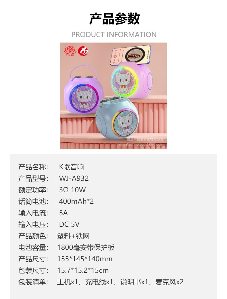 마이크가 내장된 크로스보더 블루투스 스피커, 휴대용 블루투스 스피커 203, 가정용 노래방 스피커