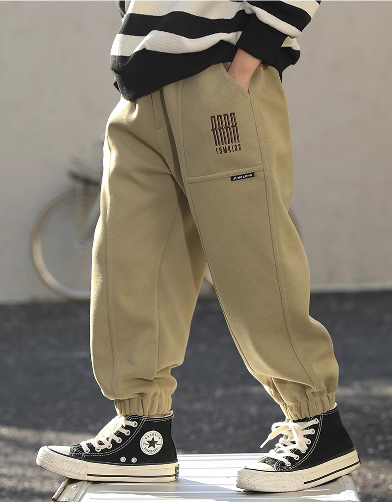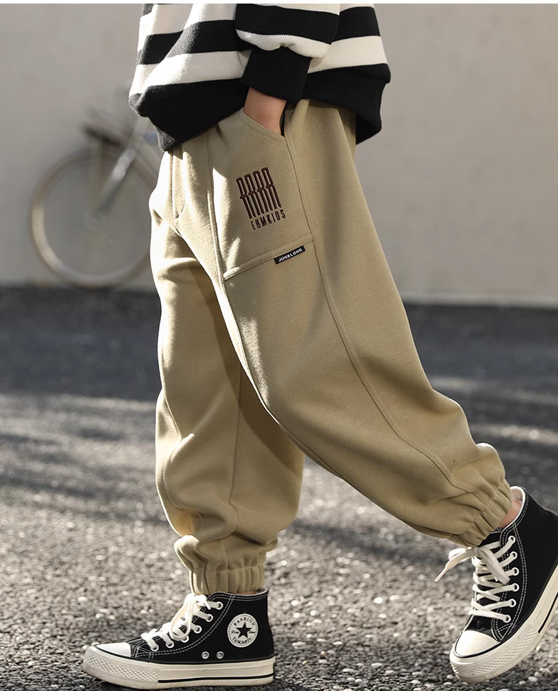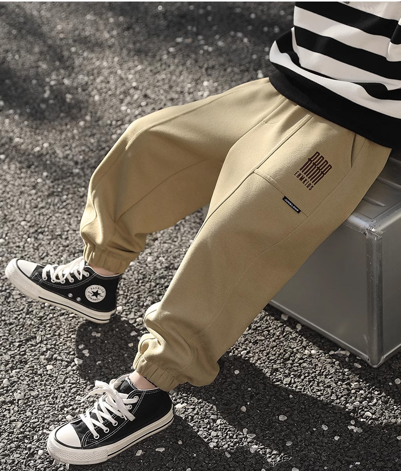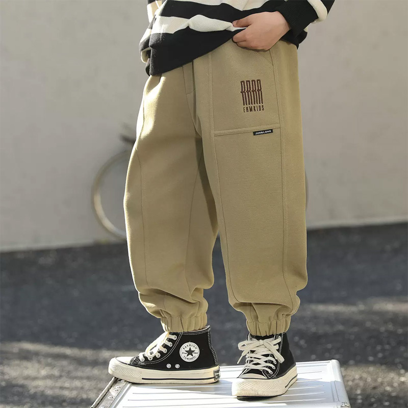 소년의 2024 봄과 가을 새로운 작업복 대형 어린이 캐주얼 패션 느슨한 다리 바지 세련된 조커스토어 가기