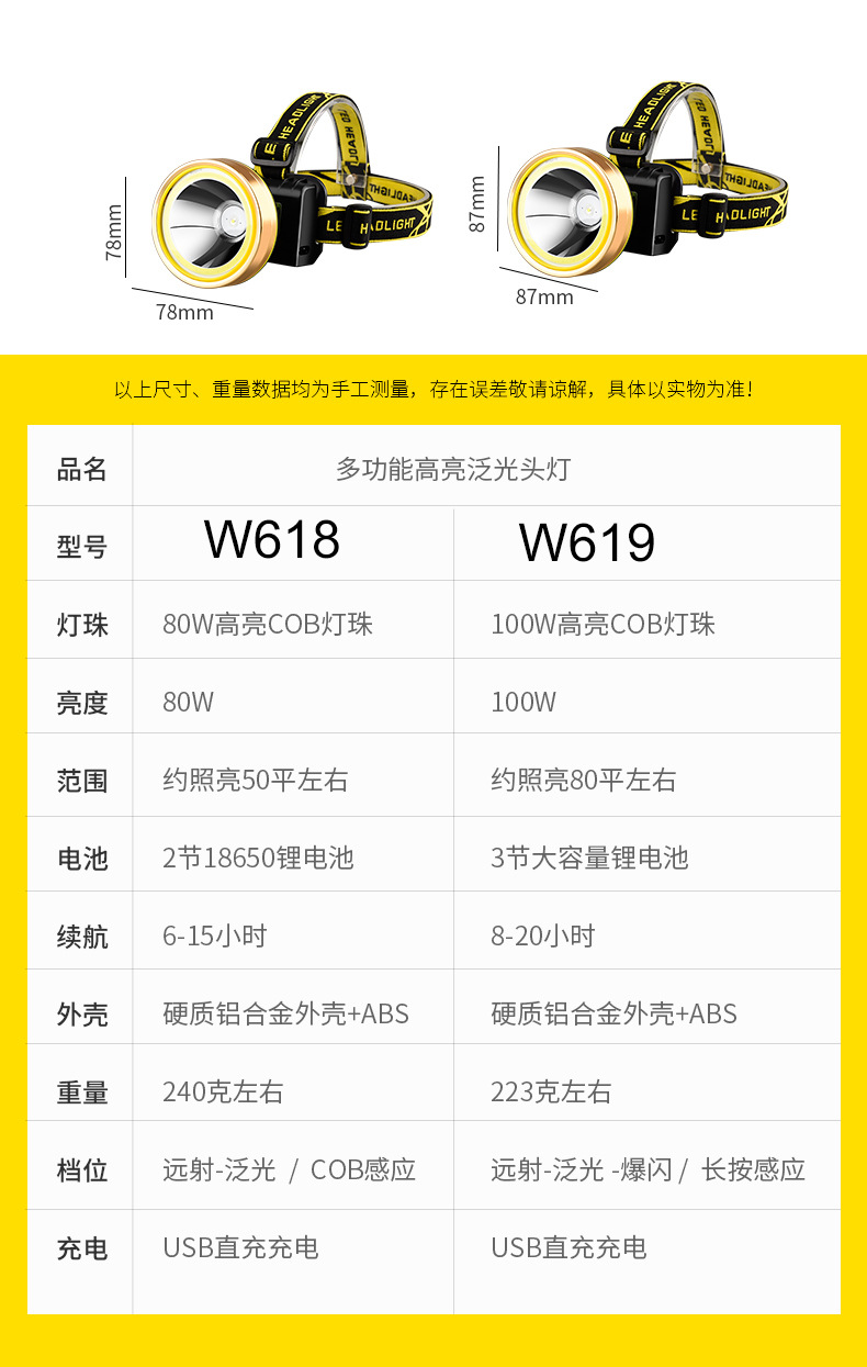 • W618: 내장 2 전기 세트 (10 시간 배터리 수명) 50 평방 조사 (추천)