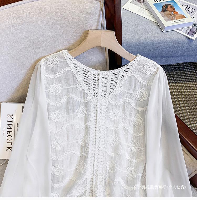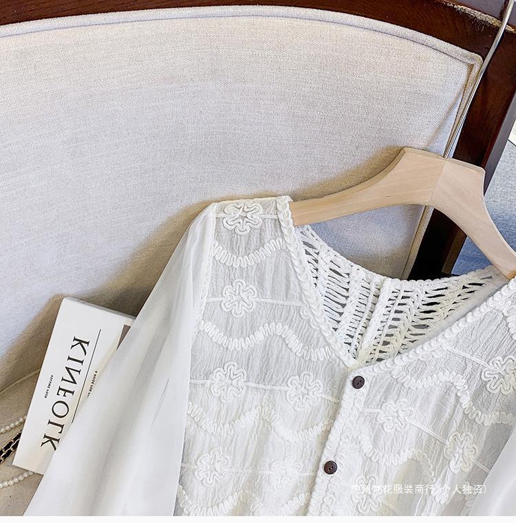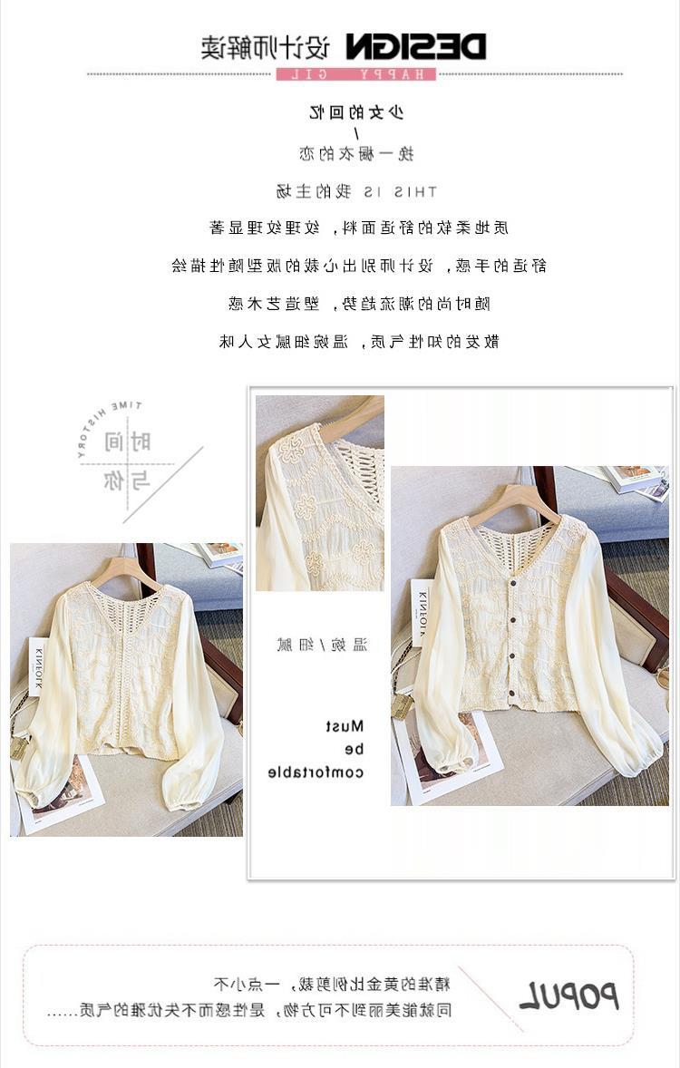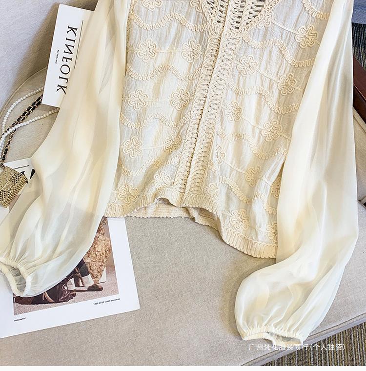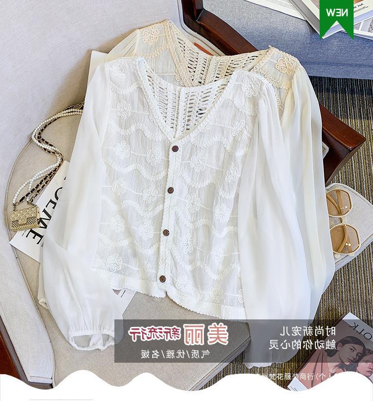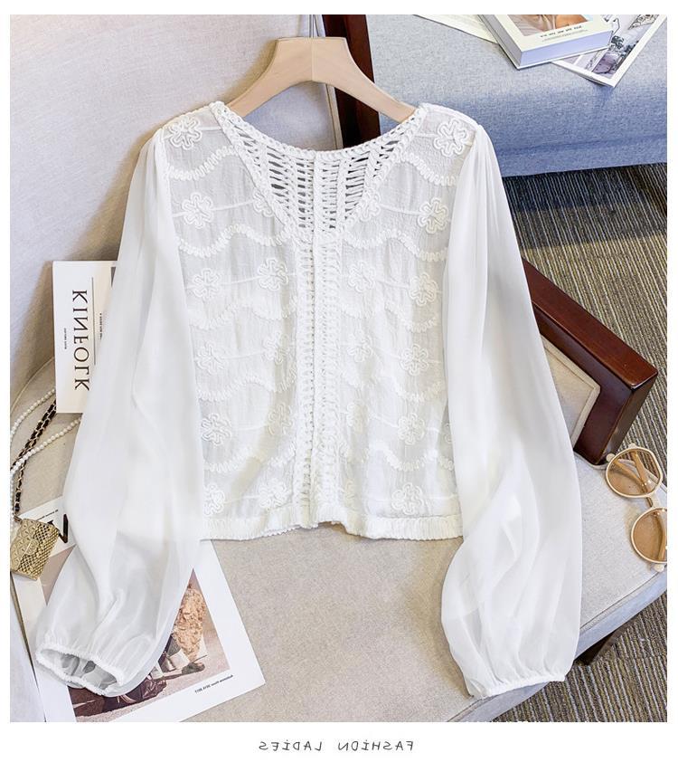 프랑스 스타일 레이스 셔츠 여성의 봄과 여름 세련된 디자인 센스 쇼트 탑 웨스턴 스타일 틈새 긴 소매 클랩 쉬폰 셔츠스토어 가기
