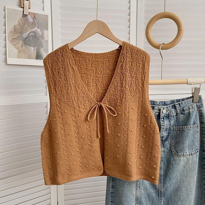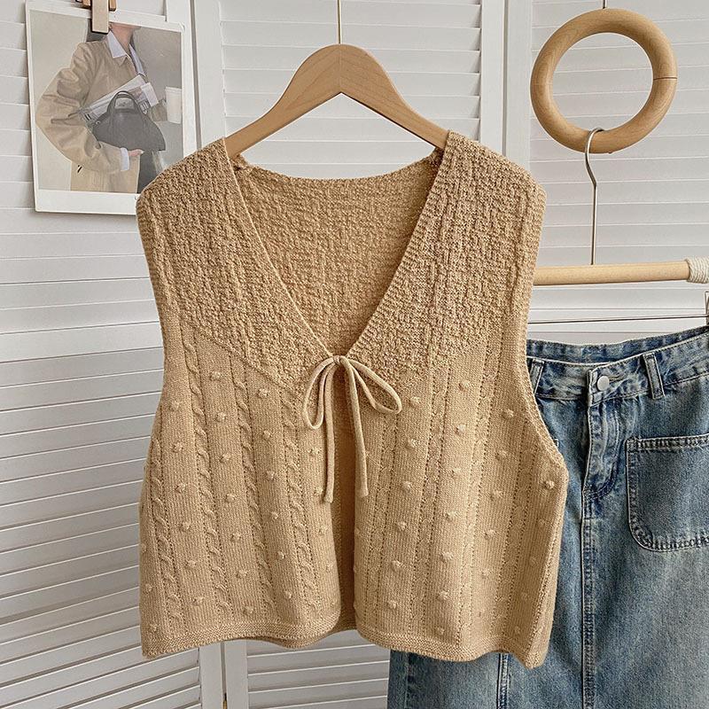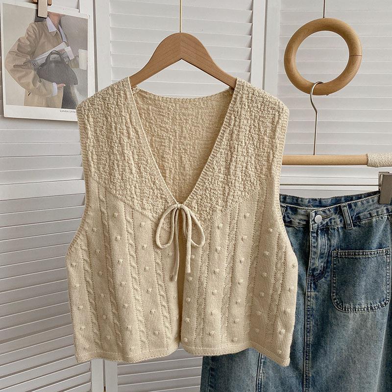 2025 봄 가을 신상 무지 아우터/이너웨어 브이넥 조끼 레트로 디자인 니트 조끼 가디건 여성용스토어 가기