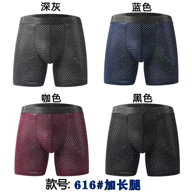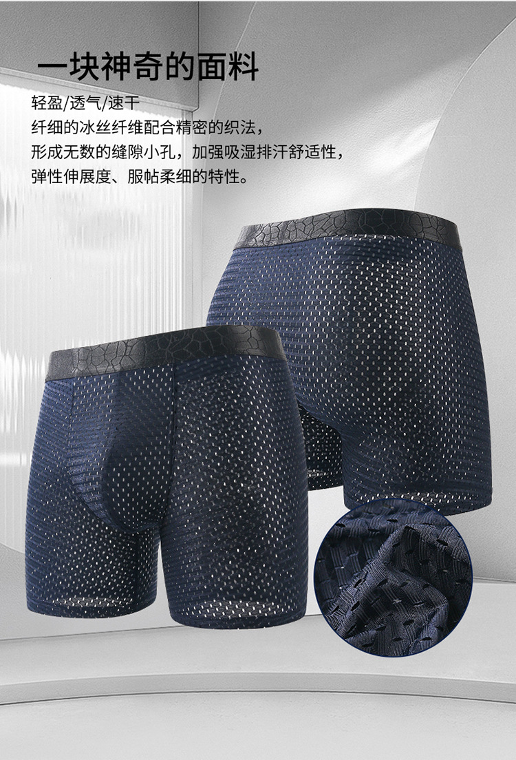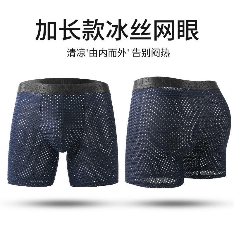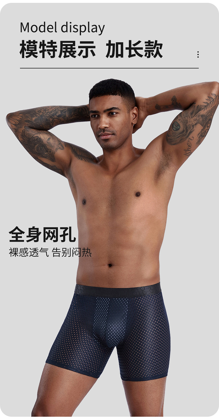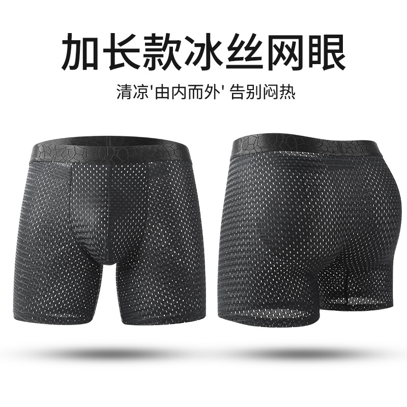 긴 아이스 실크 메쉬 남성 속옷 복서 바지 그래 핀 크로트 상쾌한 통기성 메쉬 포 코너 남성 속옷 대외 무역스토어 가기