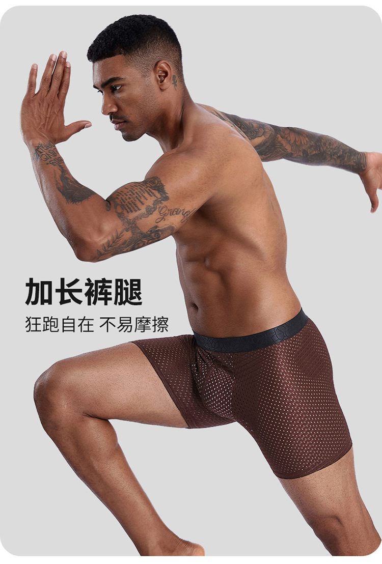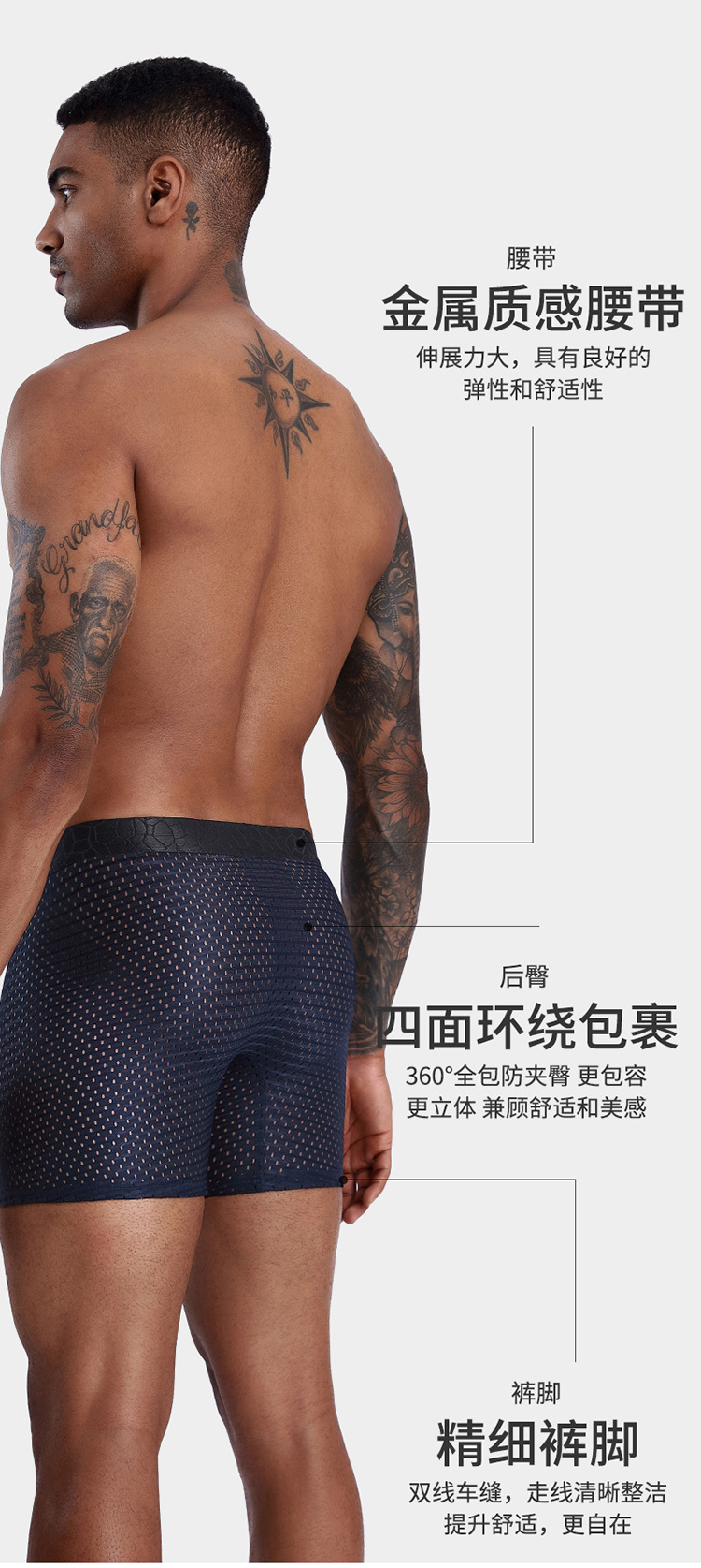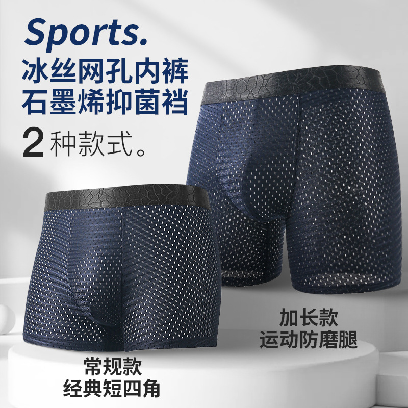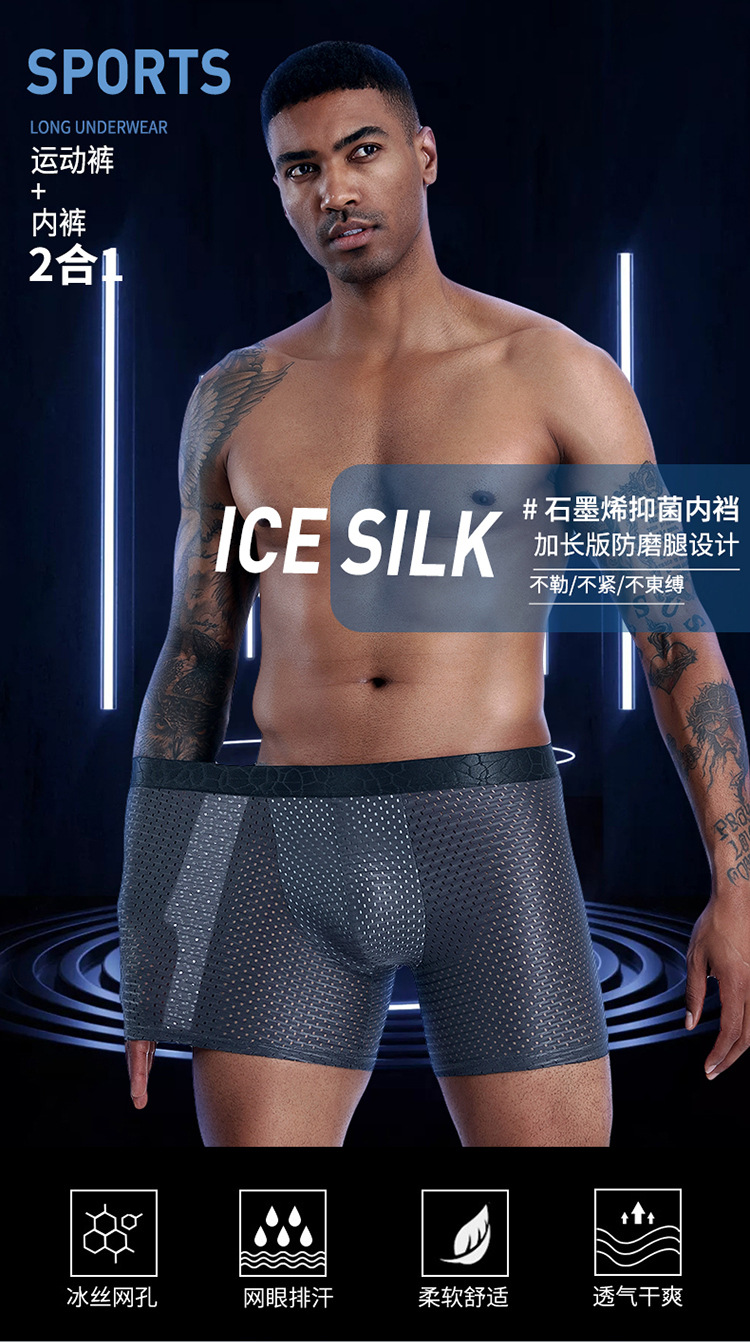 긴 아이스 실크 메쉬 남성 속옷 복서 바지 그래 핀 크로트 상쾌한 통기성 메쉬 포 코너 남성 속옷 대외 무역스토어 가기