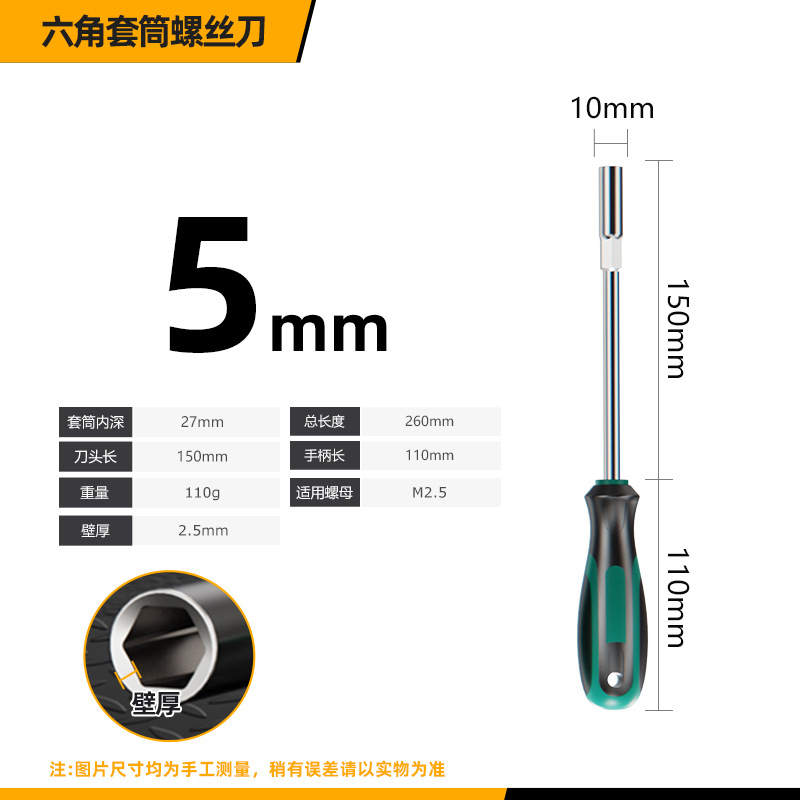• M5.5 너트에 적합한 얇은 벽 슬리브 스크루 드라이버 9mm 깊어 짐