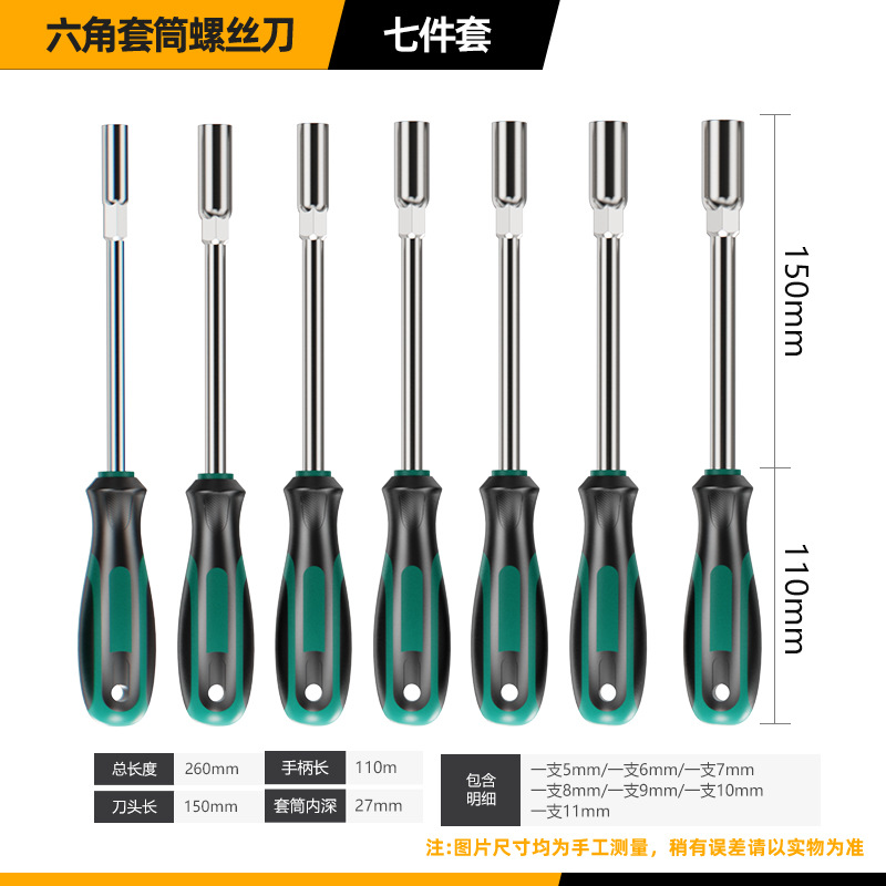 • 깊은 얇은 벽 슬리브 드라이버 7 피스 세트 5-6-7-8-9-10-11mm