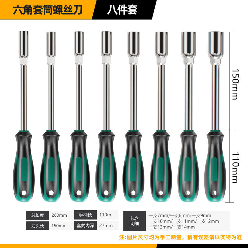 • 얇은 벽 슬리브 스크루 드라이버 8 피스 세트 7-8-9-10-11-12-13-14mm