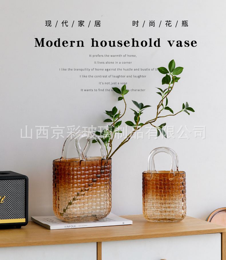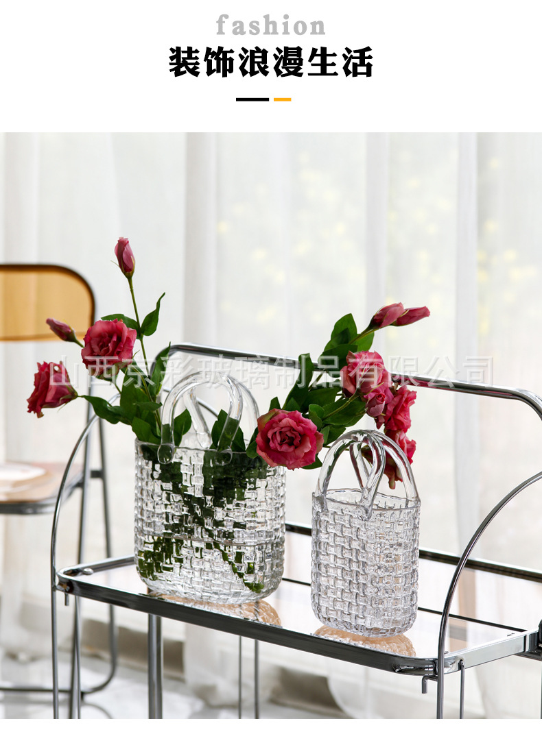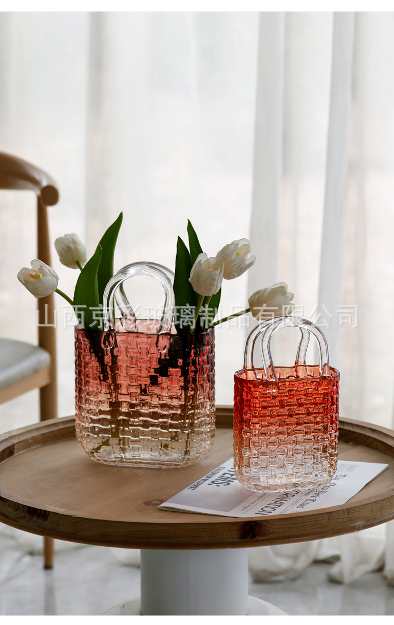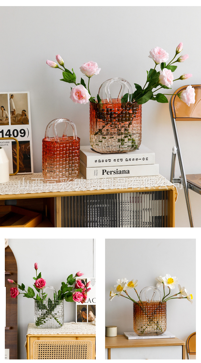현대 간단한 등나무 짠 핸드 헬드 유리 꽃병 꽃 정리 물을 올리는 꽃 식사 테이블 커피 테이블 발코니 TV 장식품스토어 가기