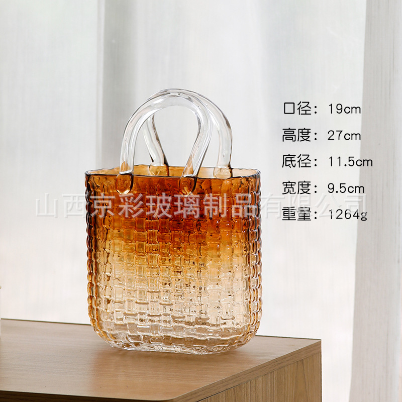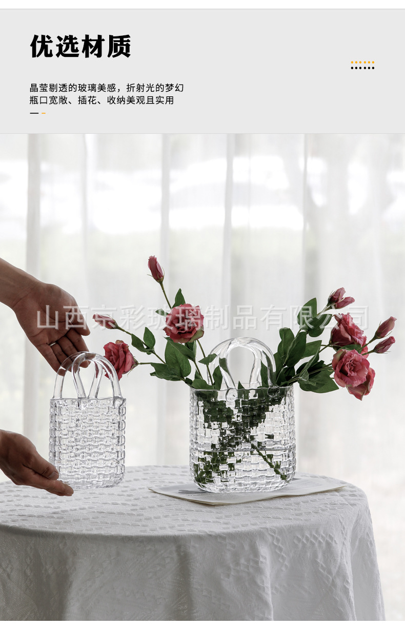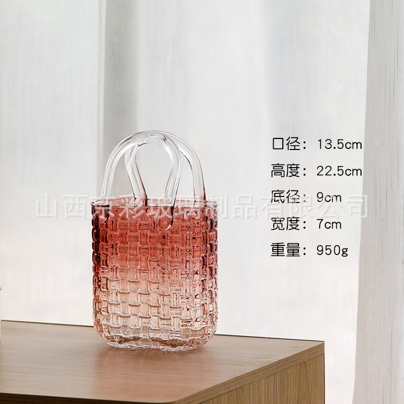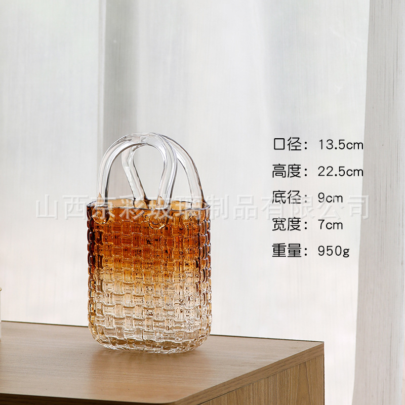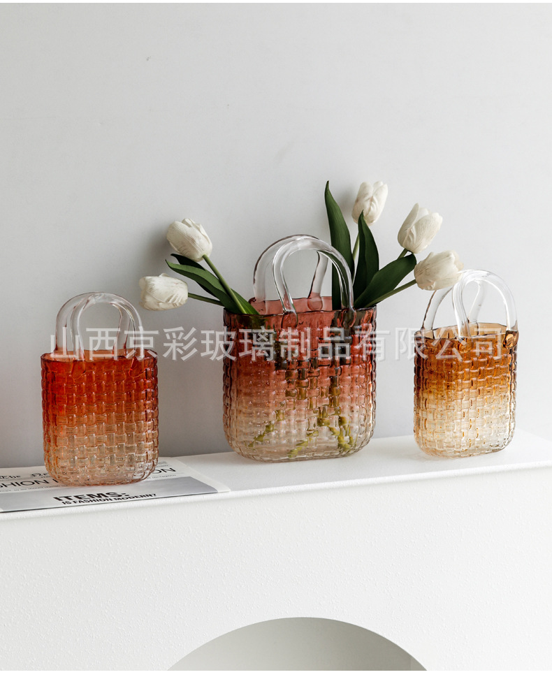 현대 간단한 등나무 짠 핸드 헬드 유리 꽃병 꽃 정리 물을 올리는 꽃 식사 테이블 커피 테이블 발코니 TV 장식품