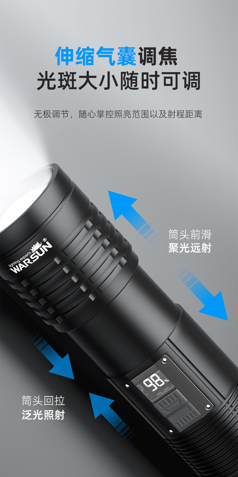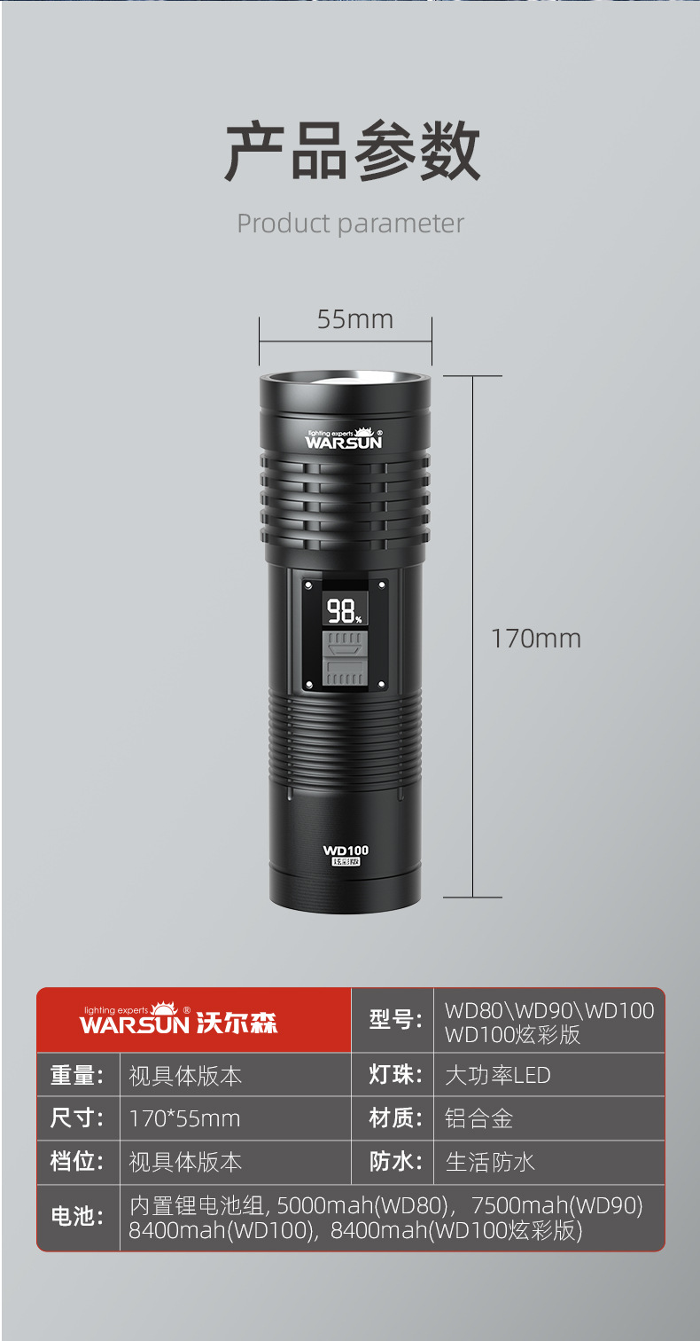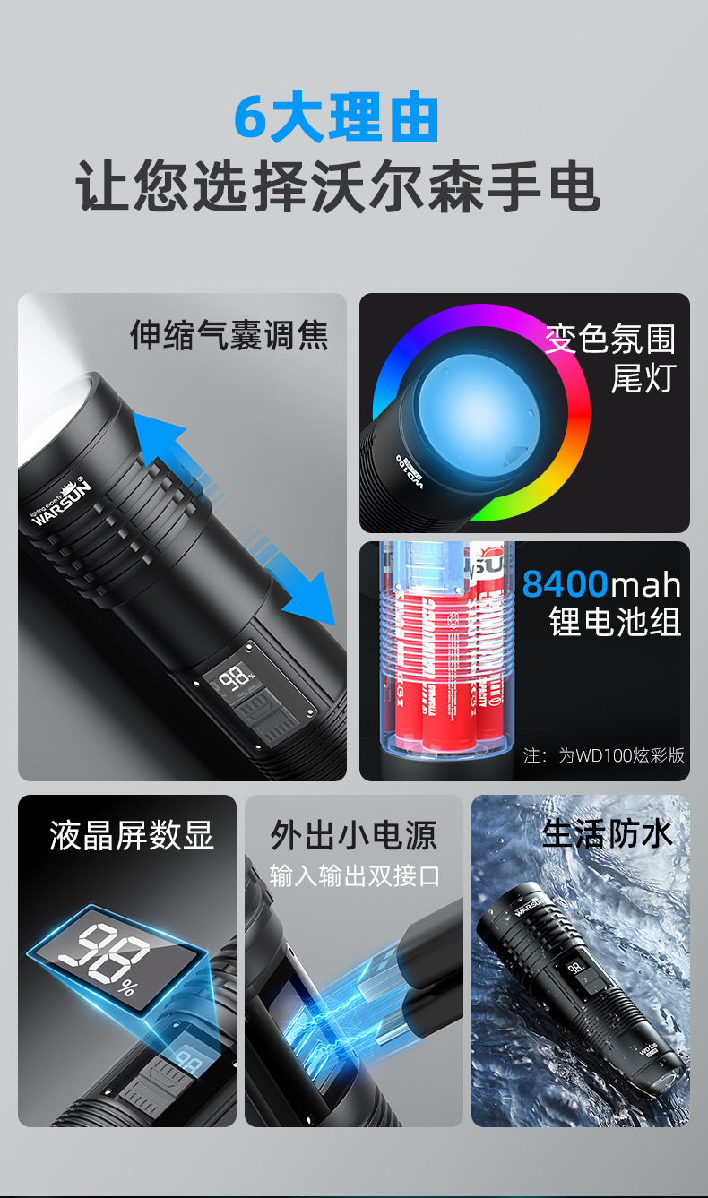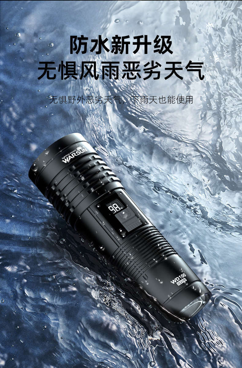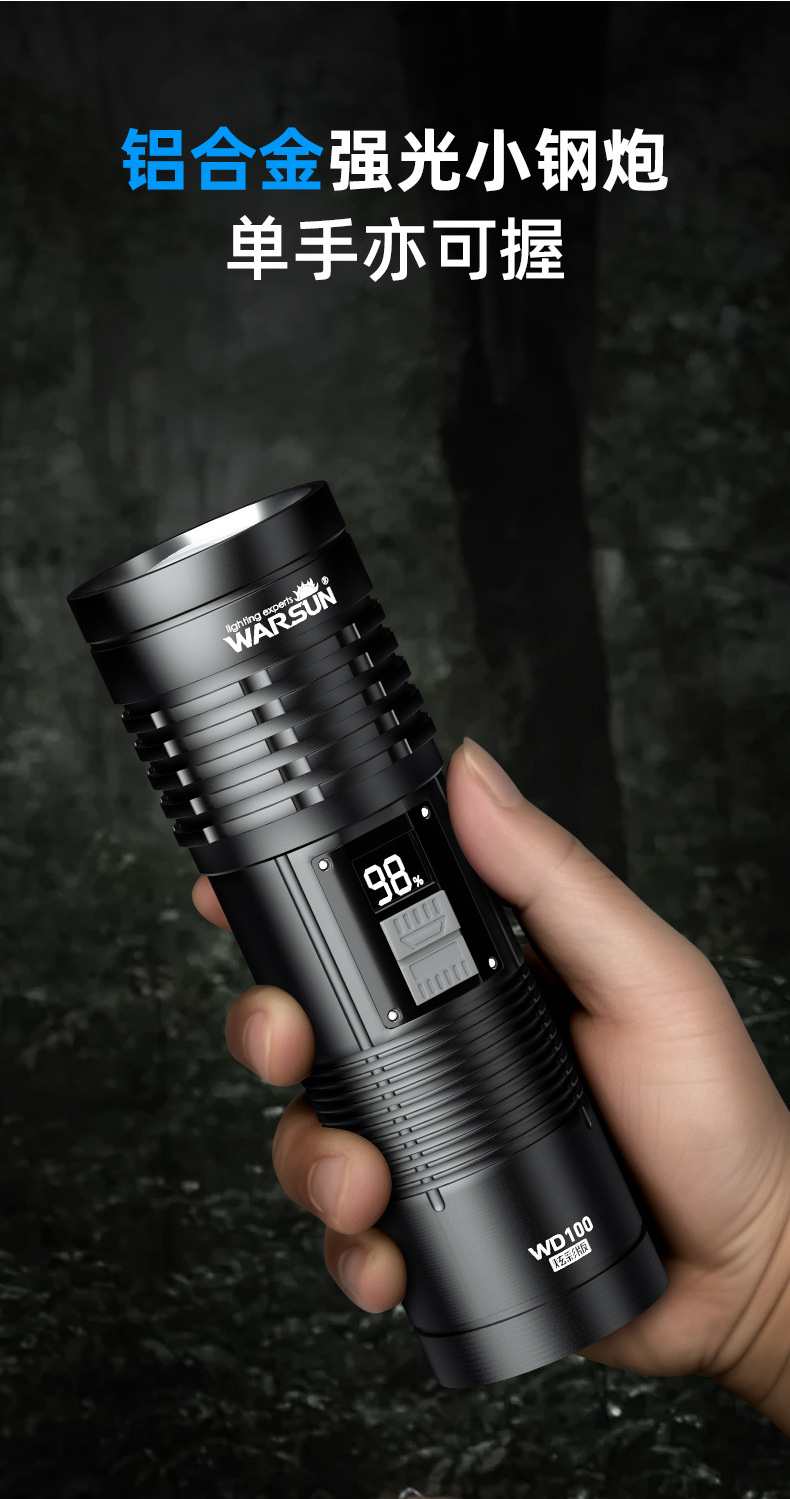 WALSON WD 시리즈 손전등 강력한 조명 충전 슈퍼 밝은 야외 작은 휴대용 장거리 미니 줌 작업 조명