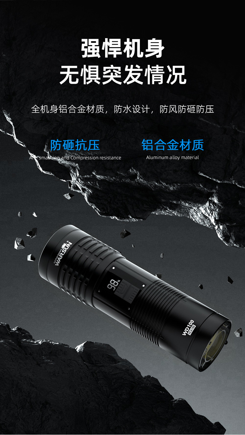 WALSON WD 시리즈 손전등 강력한 조명 충전 슈퍼 밝은 야외 작은 휴대용 장거리 미니 줌 작업 조명스토어 가기