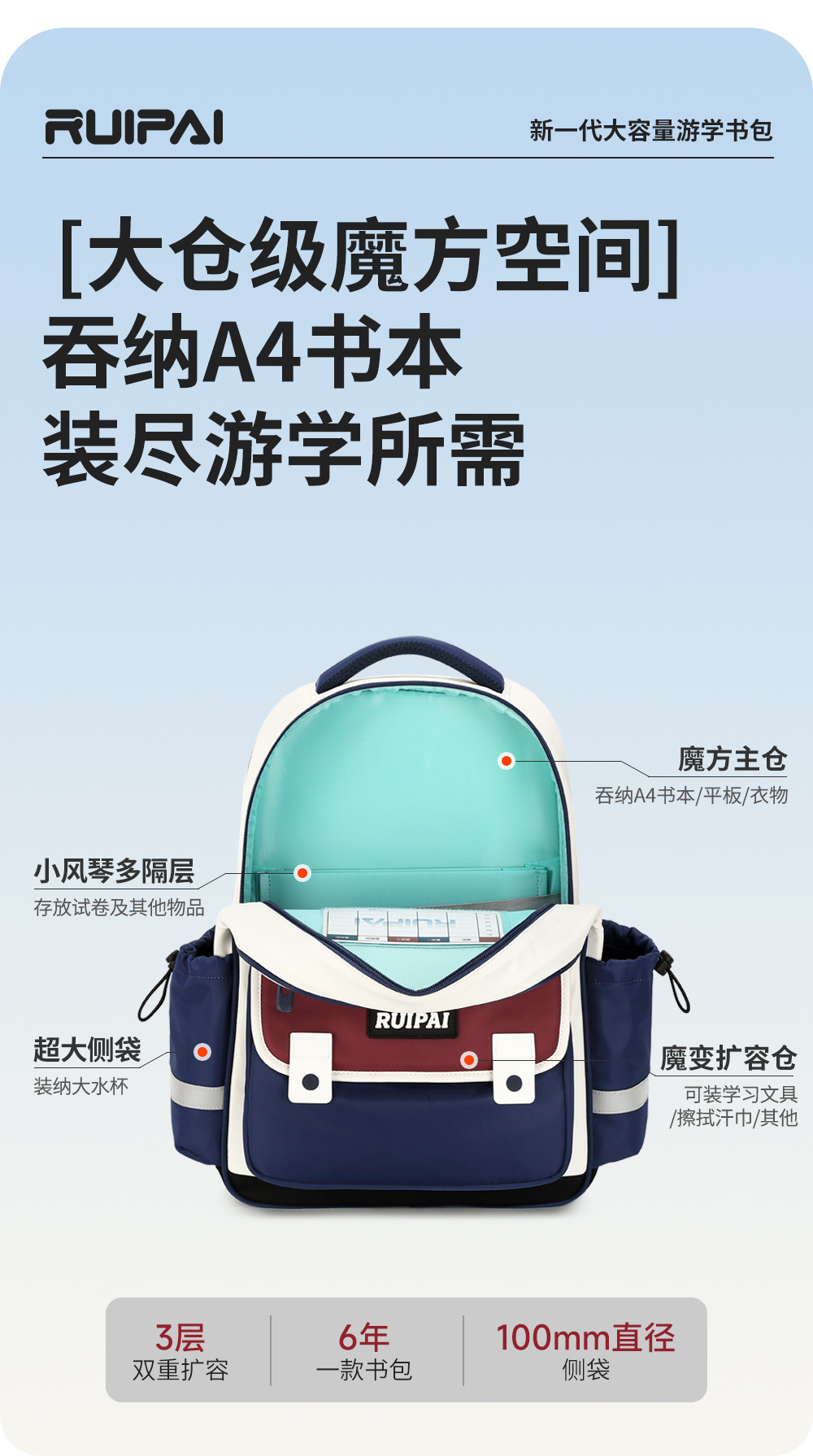 Rui Brand Schoolbag 초등학교 소년 1-3 학년 릿지 보호 및 체중 감소 어린이 배낭 배낭 대용량 Schoolbag