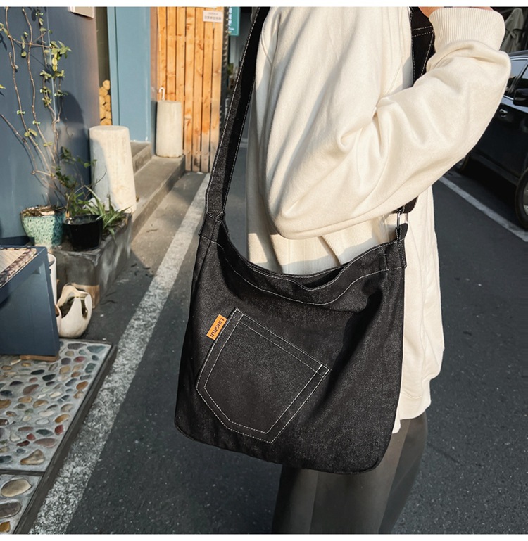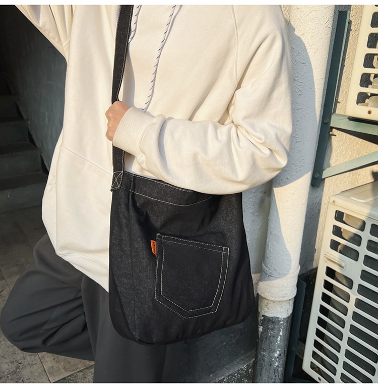 솔리드 컬러 데님 크로스 바디 백 여성 대용량 초기 8 팩 홍콩 스타일 고품질 숄더 백 남성 새로운 한국식 Satchel