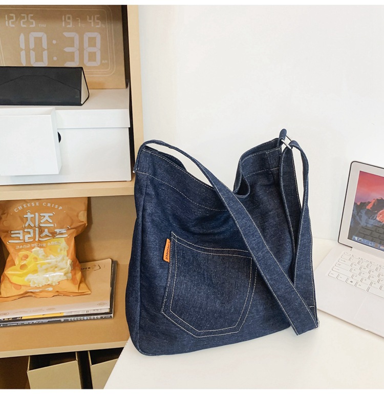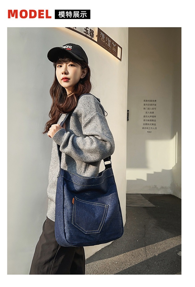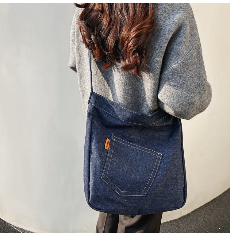 솔리드 컬러 데님 크로스 바디 백 여성 대용량 초기 8 팩 홍콩 스타일 고품질 숄더 백 남성 새로운 한국식 Satchel스토어 가기