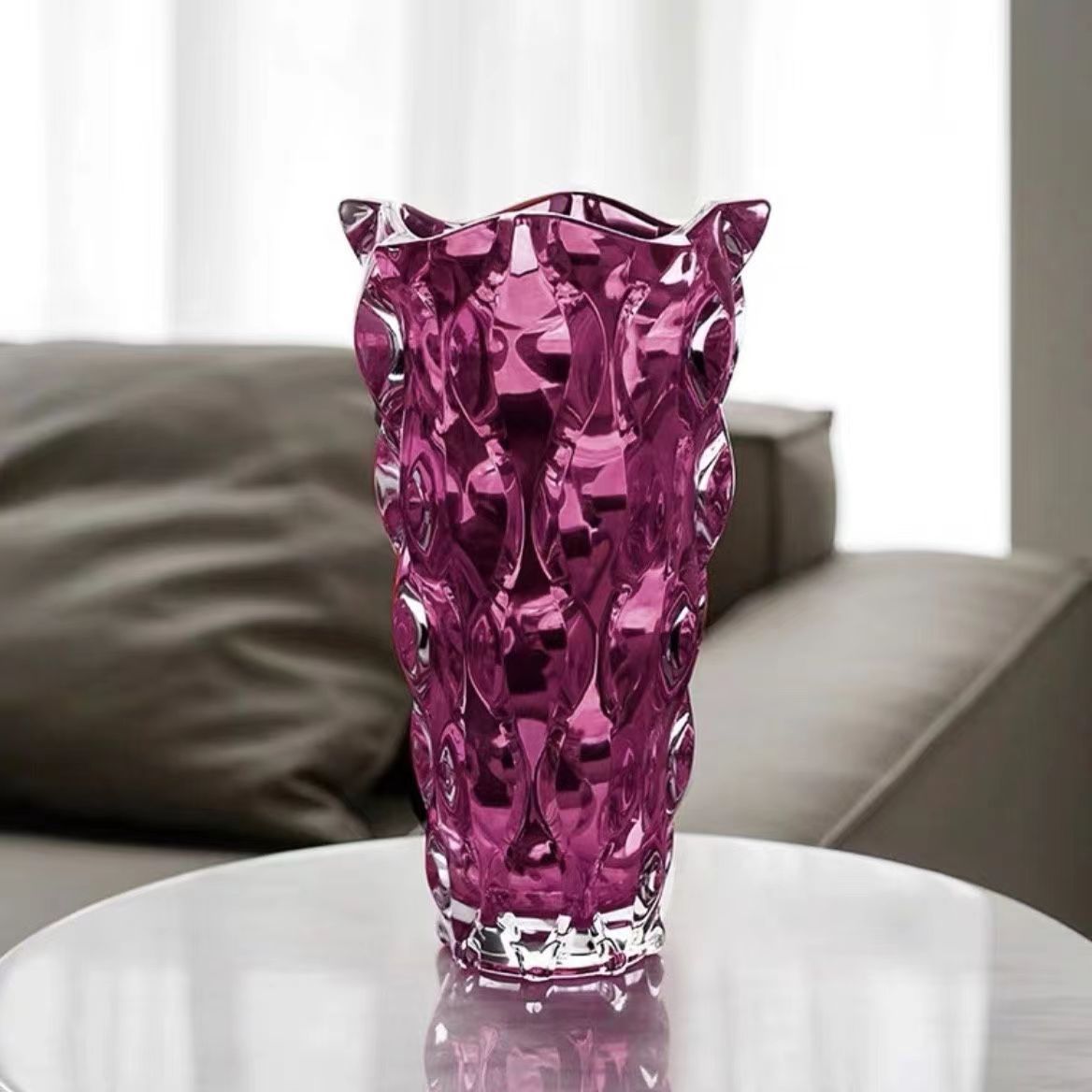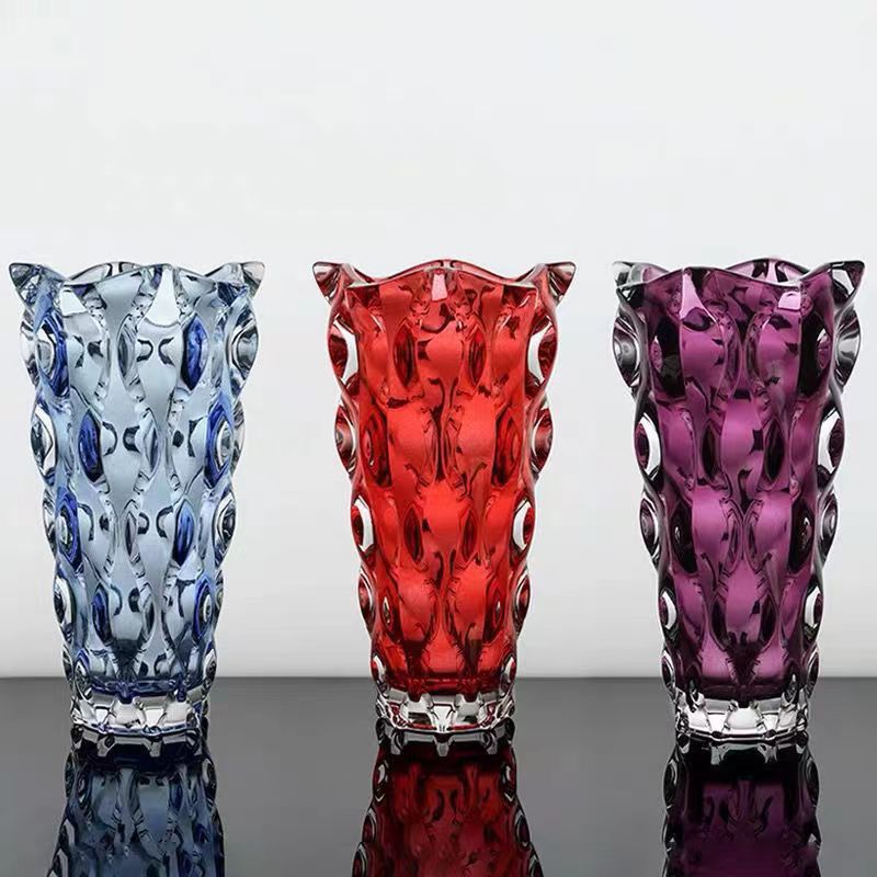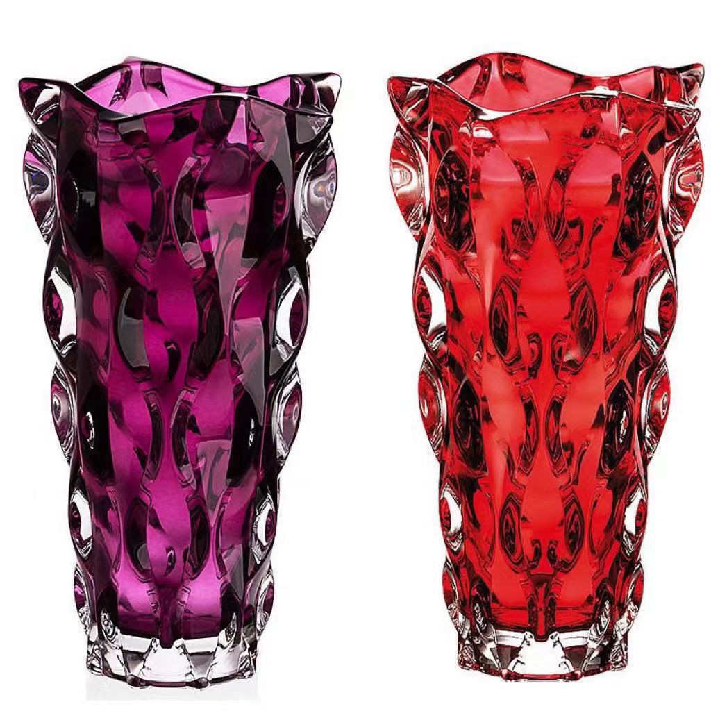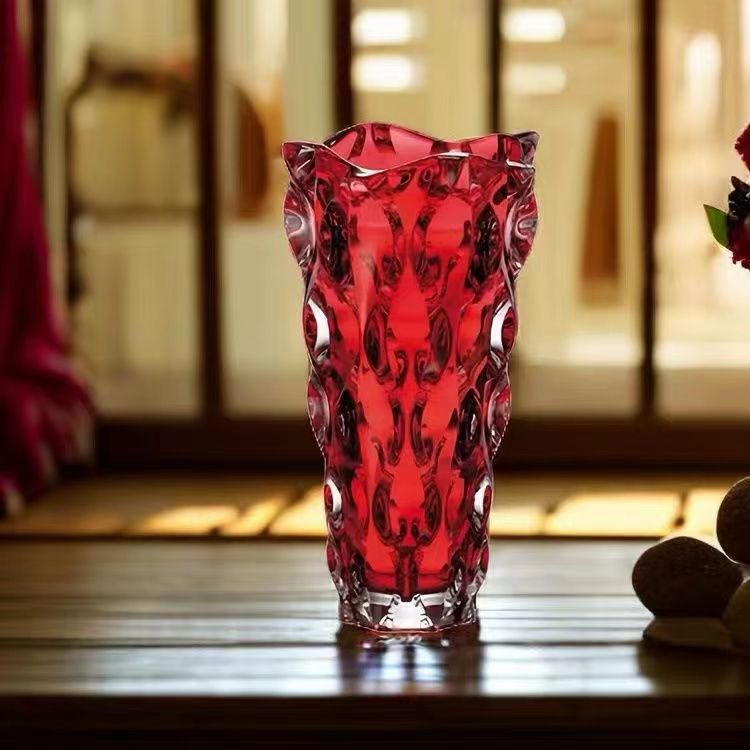 붉은 고급 두꺼운 크리스탈 유리 꽃병 장식품 고급 거실 식탁 장식 유리 물 증가 꽃과 꽃
