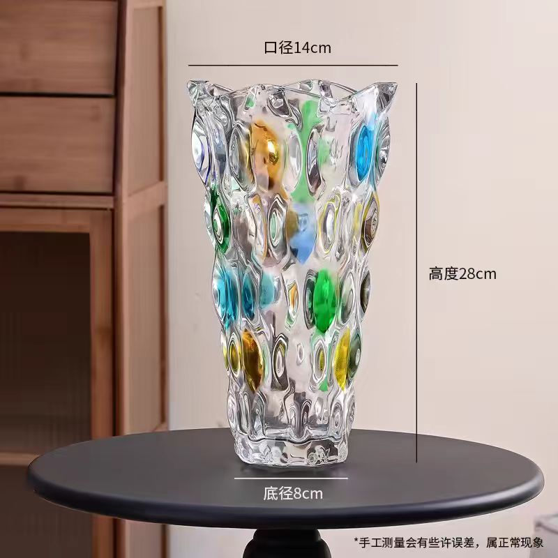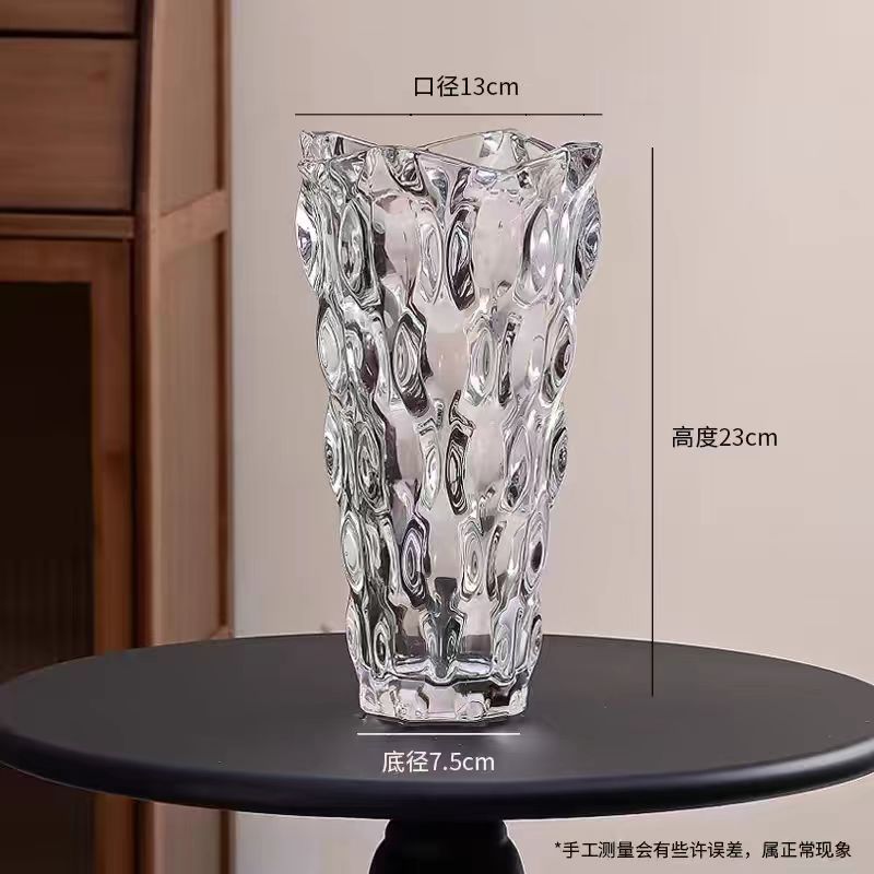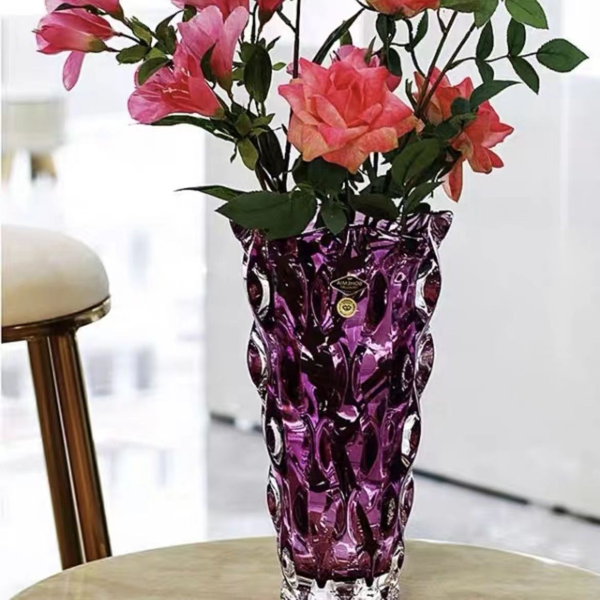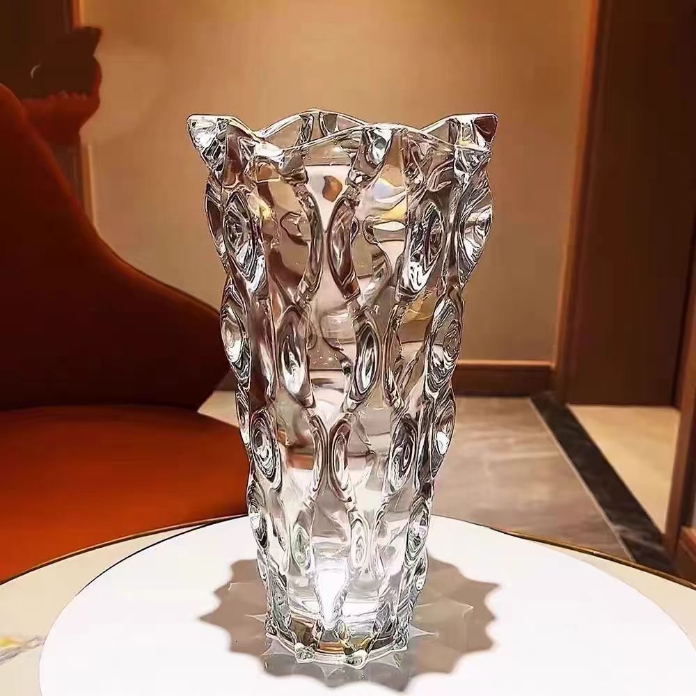 붉은 고급 두꺼운 크리스탈 유리 꽃병 장식품 고급 거실 식탁 장식 유리 물 증가 꽃과 꽃