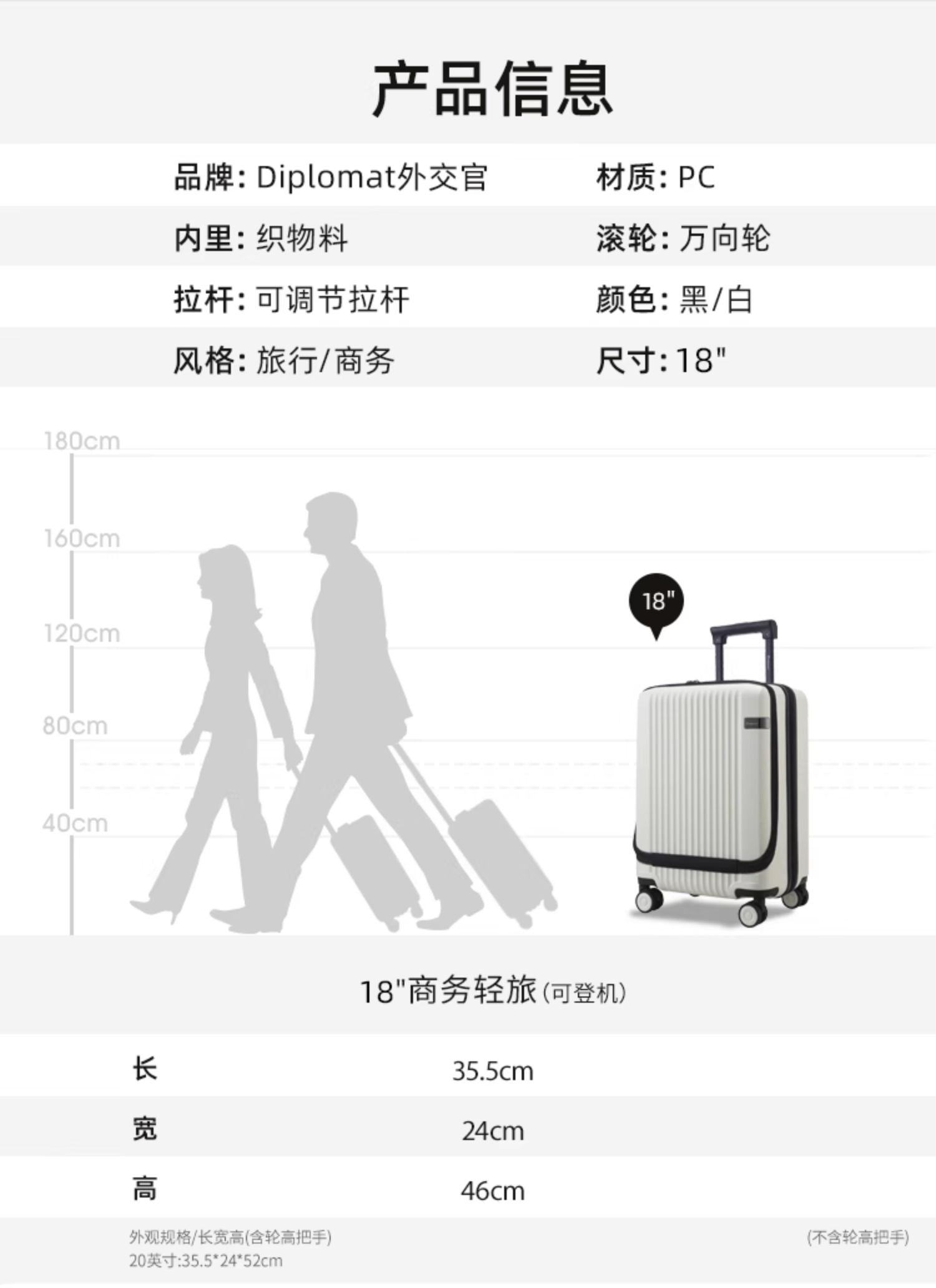 외교관 18 인치 프론트 오프닝 수하물 탑승 상자 남녀 비즈니스 박스 TC-16102스토어 가기