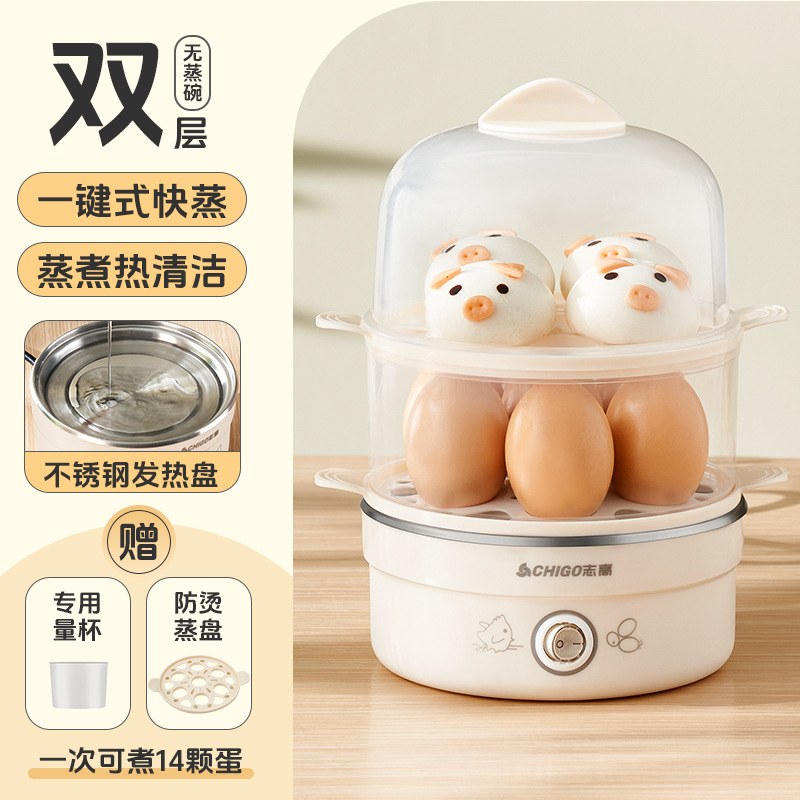 치고 계란 보일러 더블 레이어 자동 전원 오프 가정용 계란 찜기 작은 미니 기숙사 요리 계란 아침 식사 기계스토어 가기