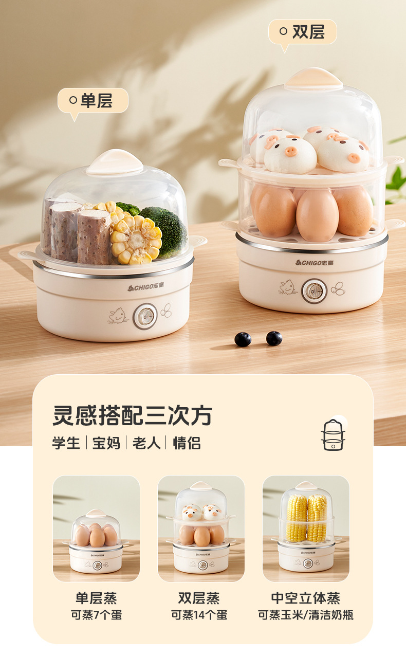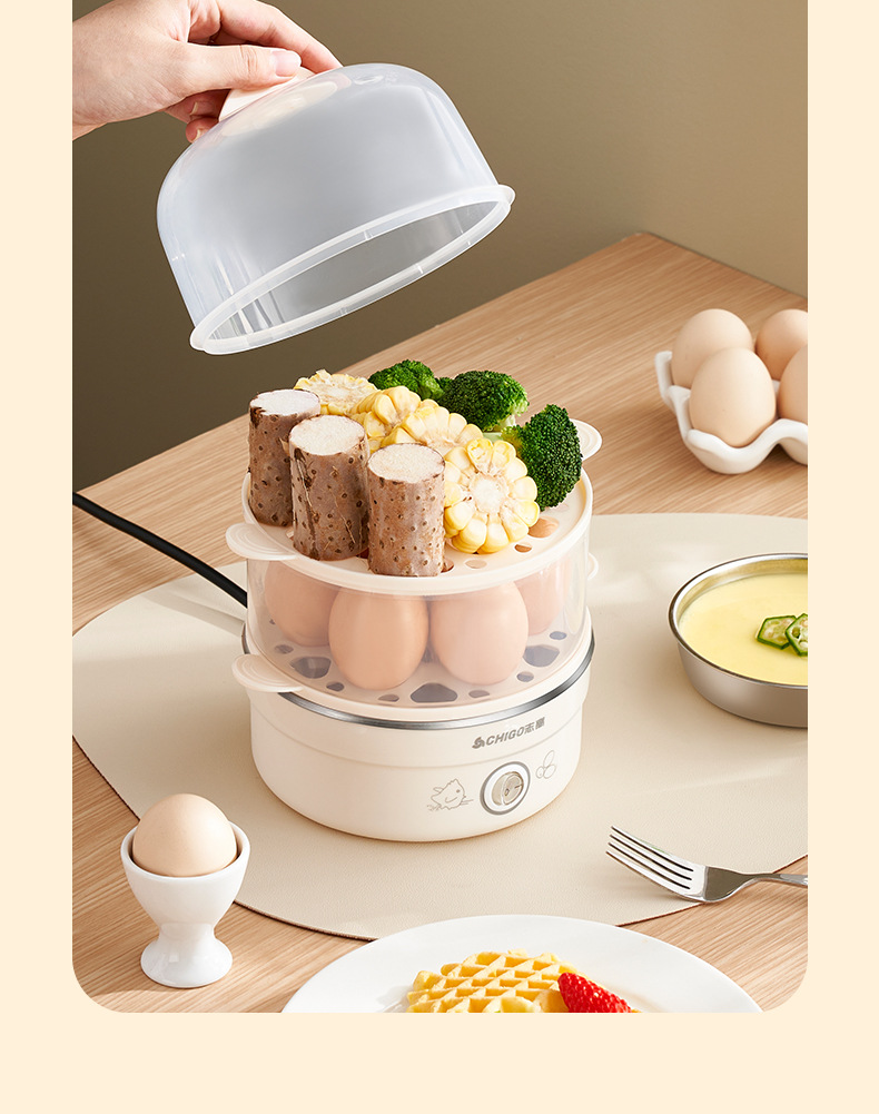 치고 계란 보일러 더블 레이어 자동 전원 오프 가정용 계란 찜기 작은 미니 기숙사 요리 계란 아침 식사 기계