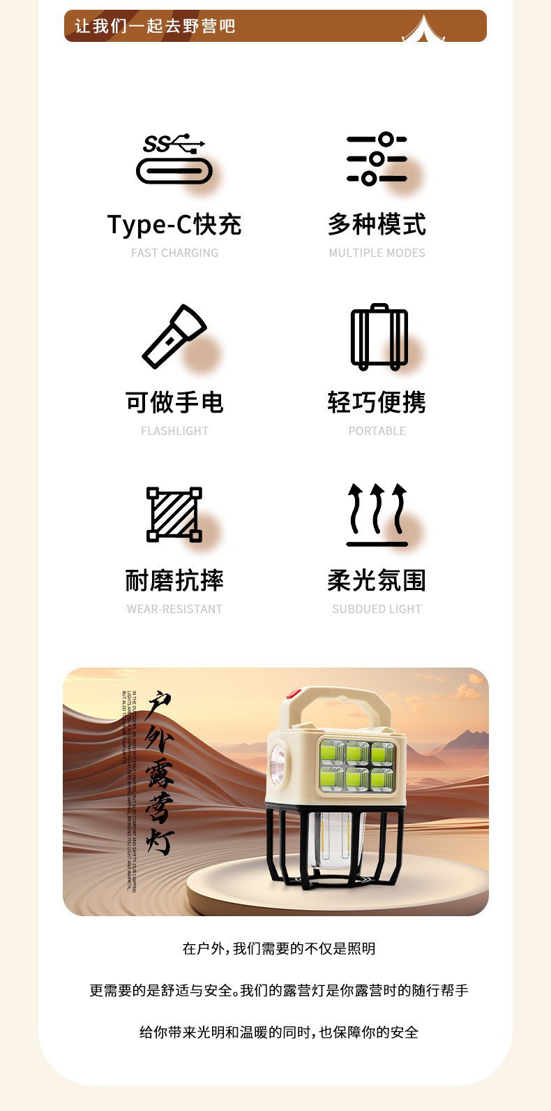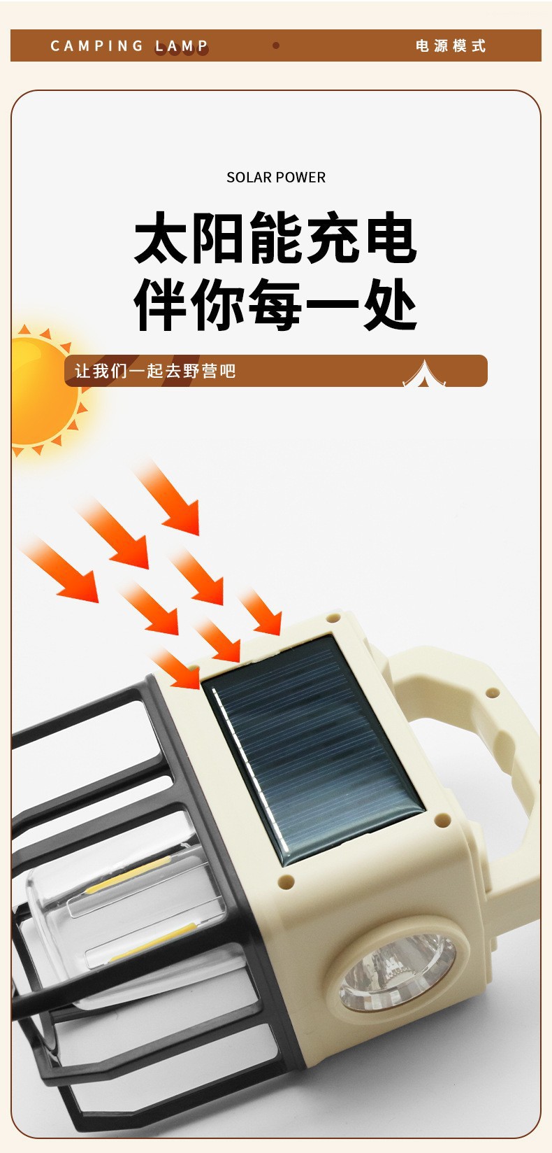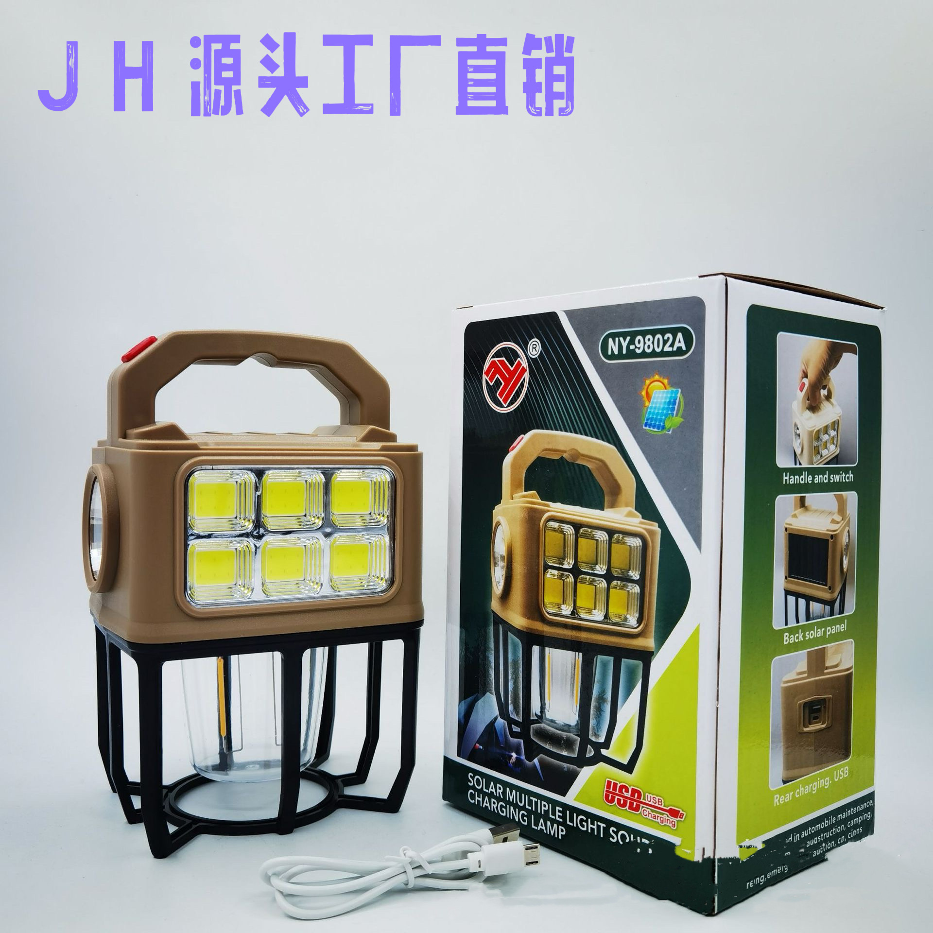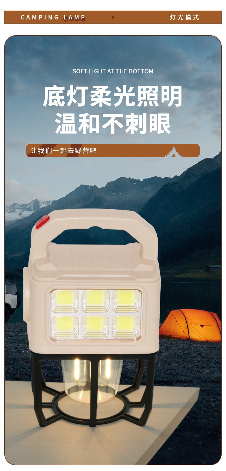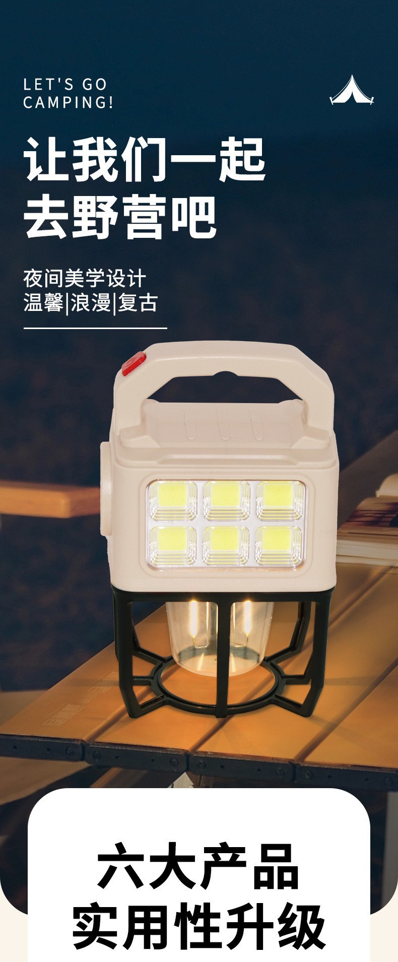 국경을 넘는 새로운 태양광 LED 캠핑 랜턴, 휴대용 캠핑 랜턴, 야외 다기능 텐트 랜턴