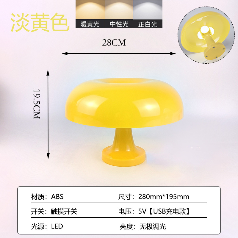 • 충전식 모델 - 밝은 노란색 버섯 램프