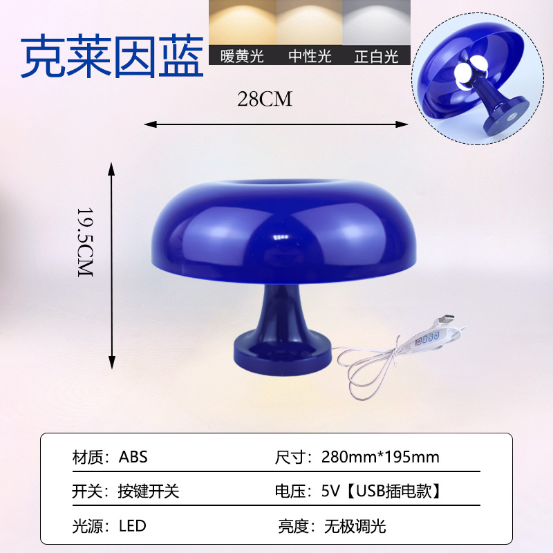 • 플러그인 모델 - 네이비 블루 버섯 램프