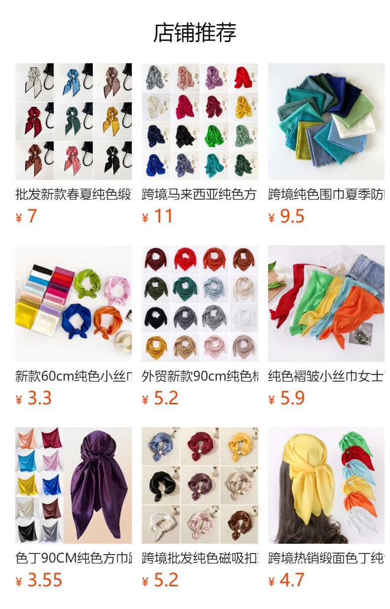 60cm 실크 스카프 단색 작은 사각형 스카프 시뮬레이션 실크 유럽과 미국의 새틴 목도리 스카프 간단한 스카프 터번 국경 간 도매스토어 가기