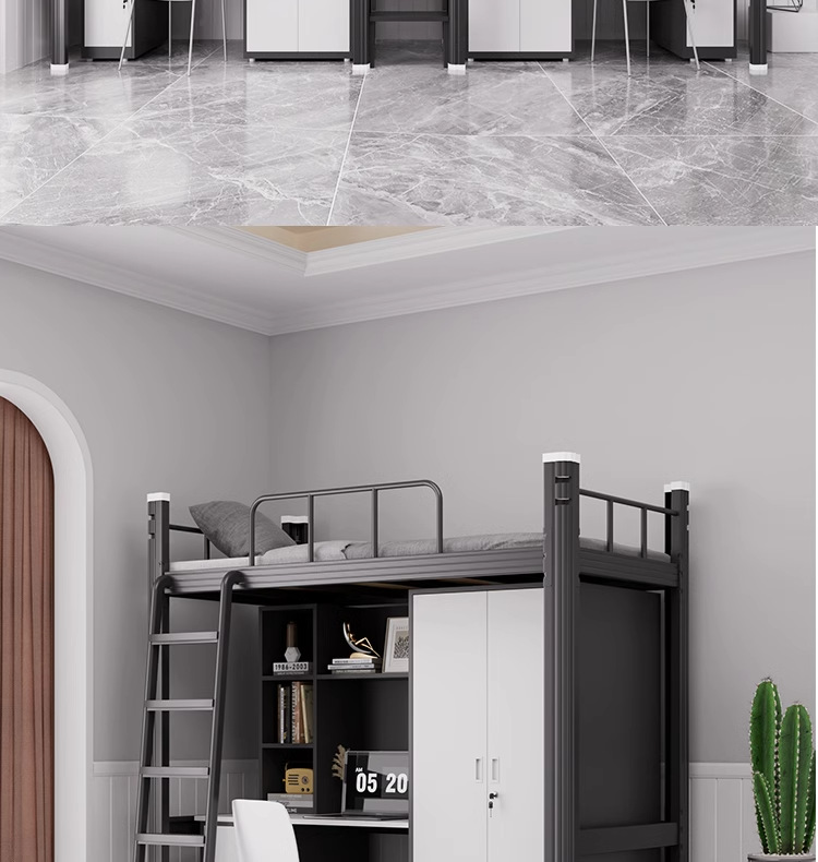 학생 아파트 침대 침대 낮은 테이블 조합 침대 기숙사 침대 직원 철 프레임 침대 상하 침대 바닥 사다리