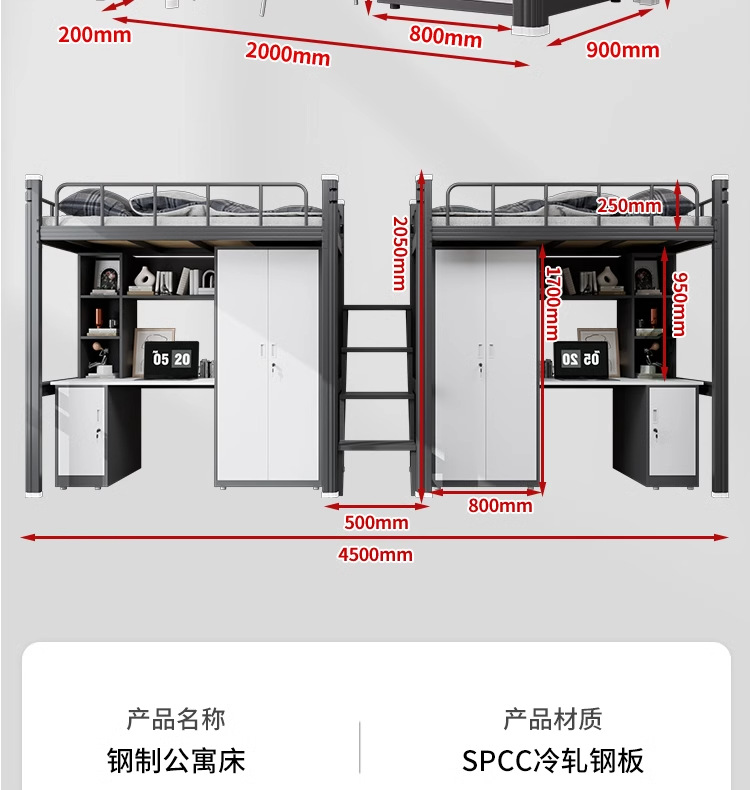 학생 아파트 침대 침대 낮은 테이블 조합 침대 기숙사 침대 직원 철 프레임 침대 상하 침대 바닥 사다리스토어 가기