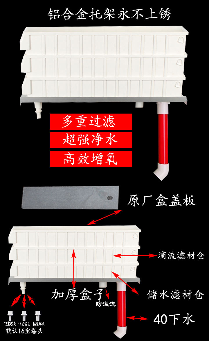 Trickle 상자 물고기 탱크 거북이 탱크 상부 필터 건조하고 젖은 분리 필터 회전율 상자 조용한 산소 상부 수족관 필터